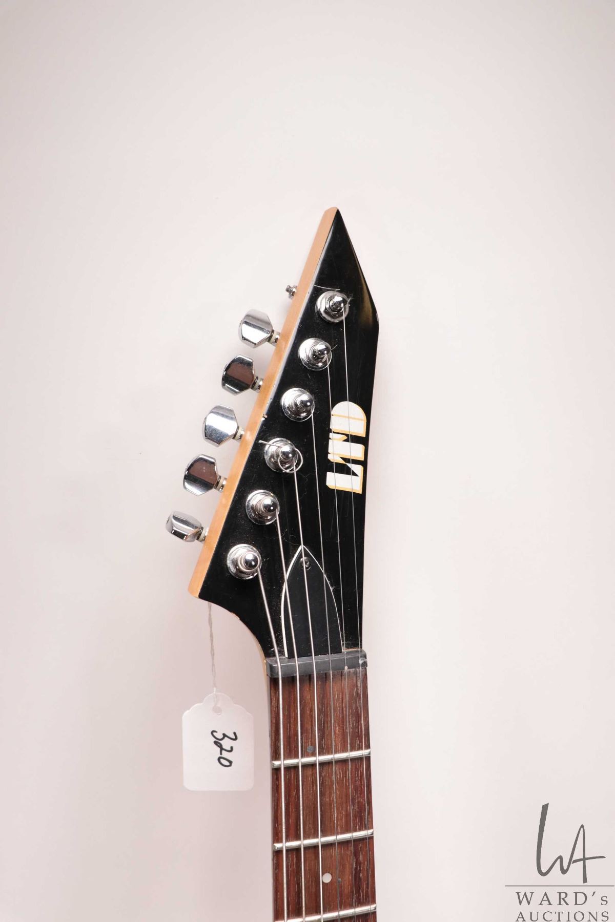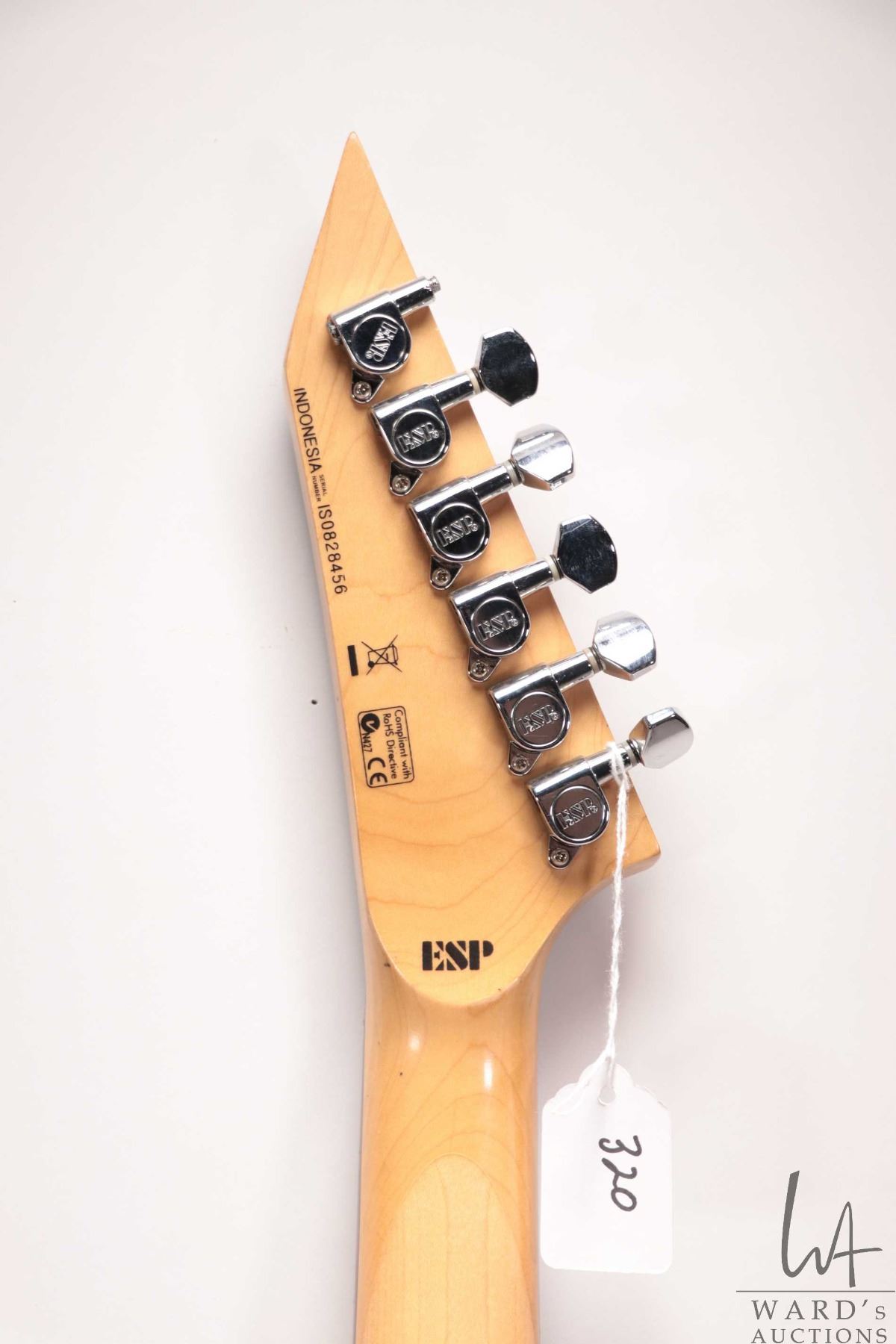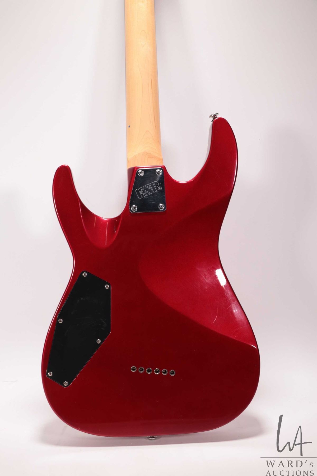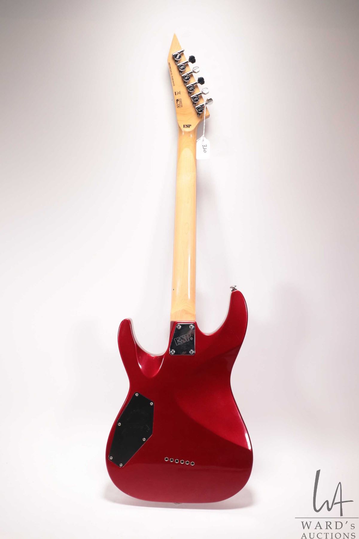 ESP Ltd. MH-50NT guitar with "string-thru-body" bridge design, ESP Humbucker pickups, in scarlet red. Serial no. 1S0828456