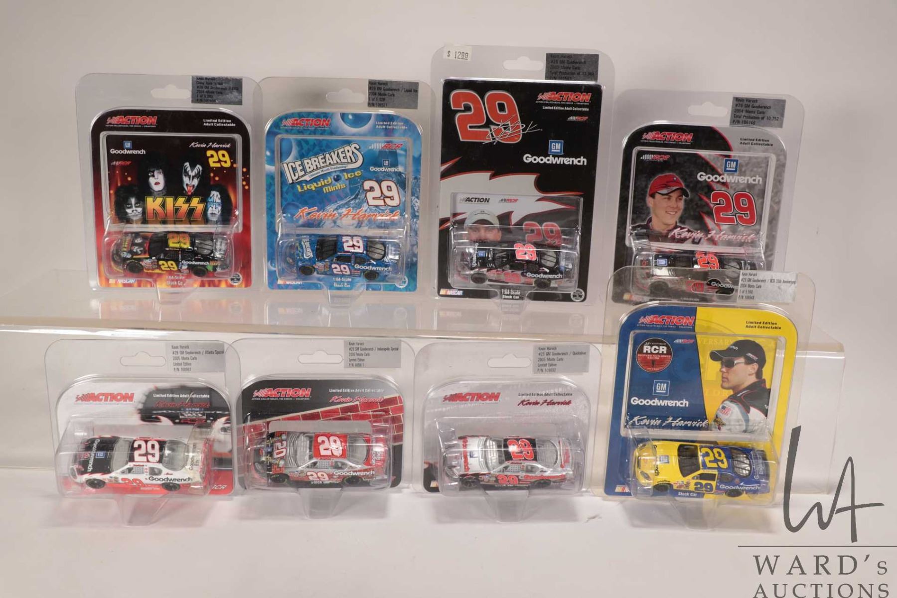 Eight Kevin Harvick limited edition Action 1: 64 scale die cast cars, various themes including Kiss, Ice Breakers and Goodwrench