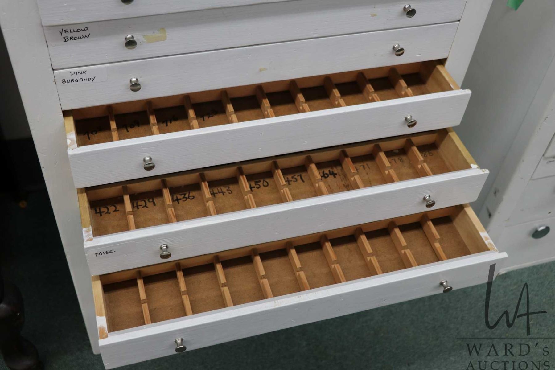 Eight drawer cabinet with dividers in the skinny drawers. Ideal for collectors. Measures 31" high, 23" wide and 16" deep.