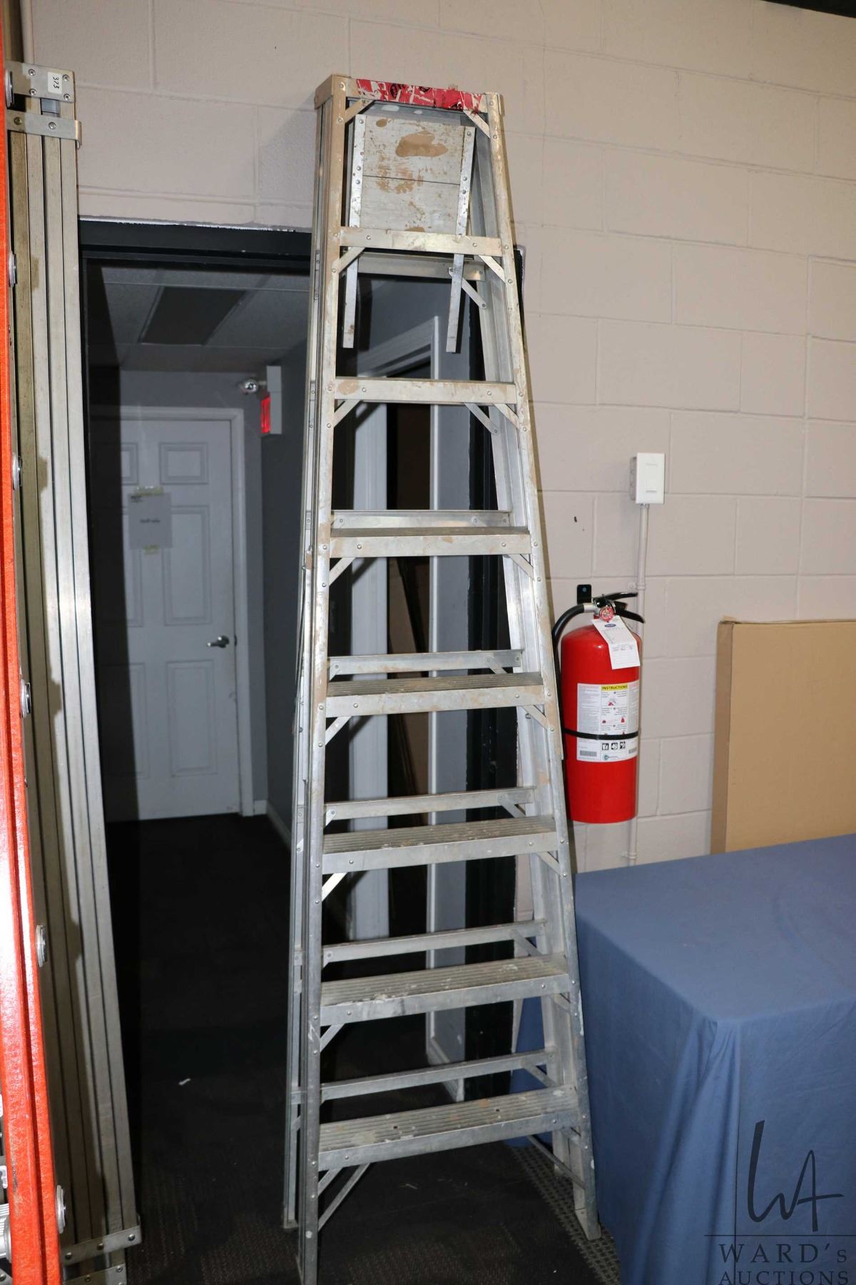 Eight foot aluminim step ladder with paint tray. NOTE: This Lot Is Not Available For Shipping. Local pickup only.