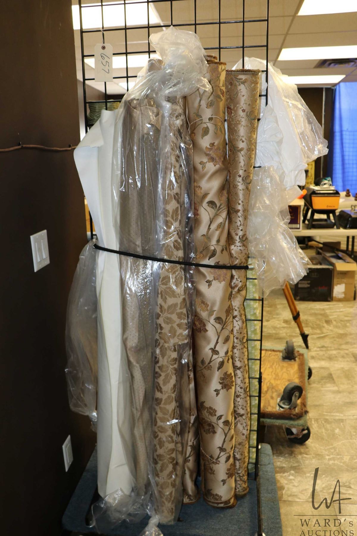 Eight rolls of upholstery material including brocades and cream cotton lining material