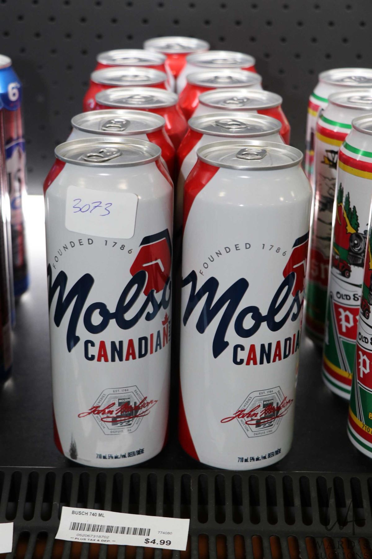 Eleven cans of Molson Canadian beer 710ml / 5% ABV Note: Alcohol cannot be insured by any courier in Canada. Local pick up is recommended. Canadian bidders only