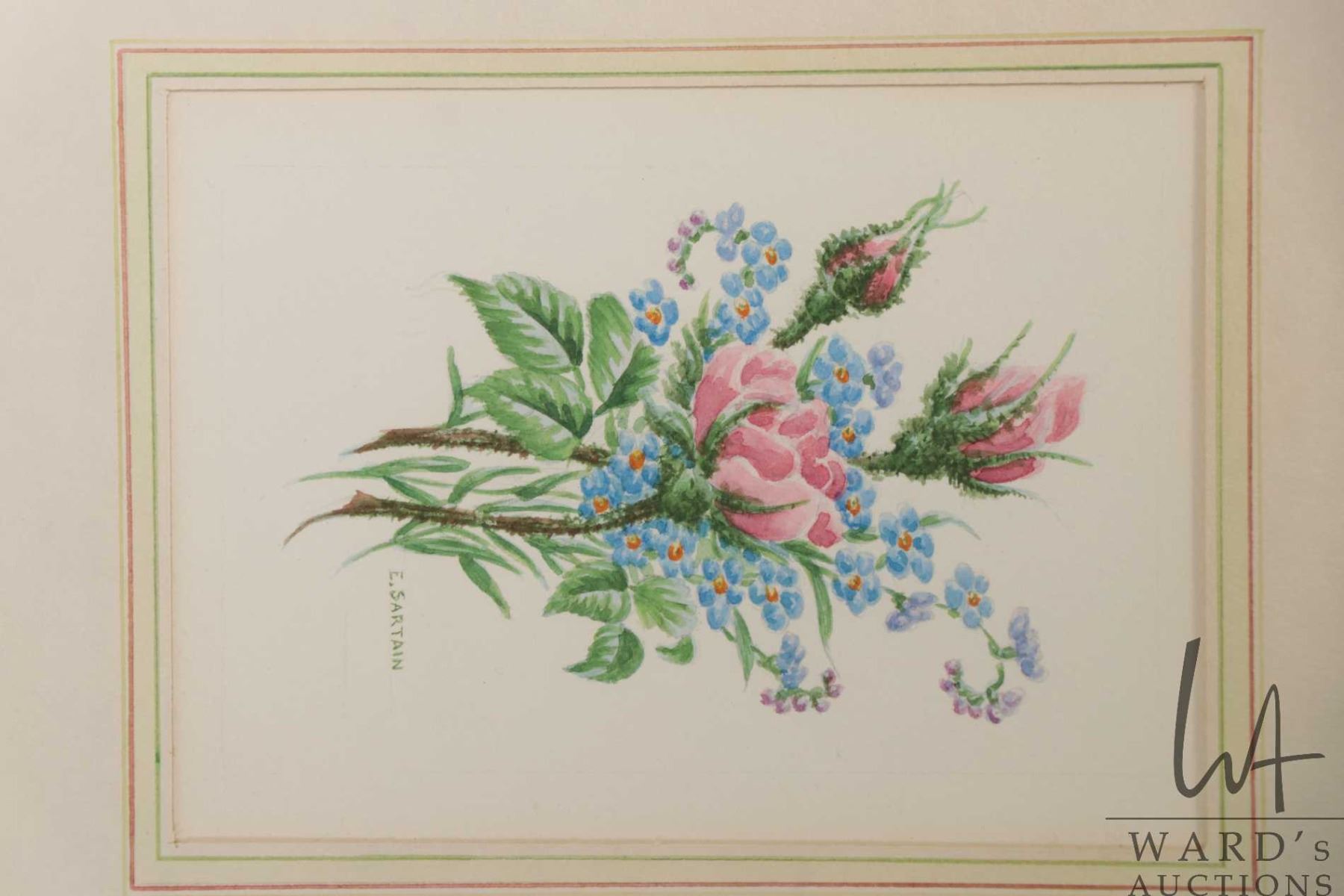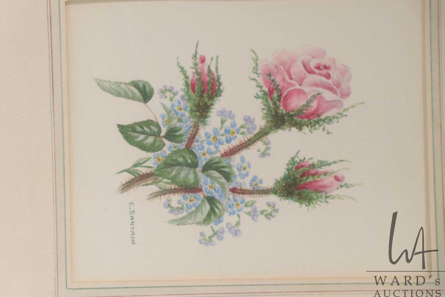Emily Sartain, two framed original watercolour florals including "Moss Rosebud and Forget-Me-Nots" 6