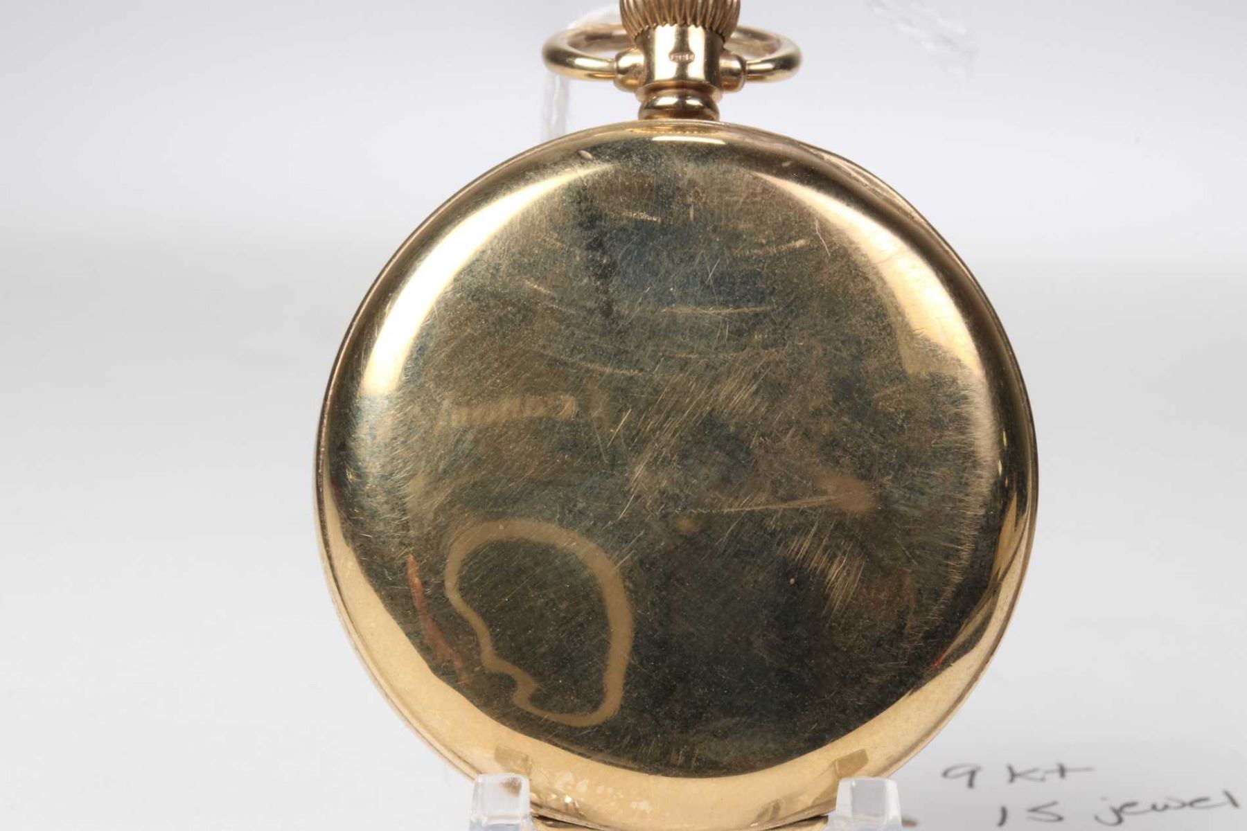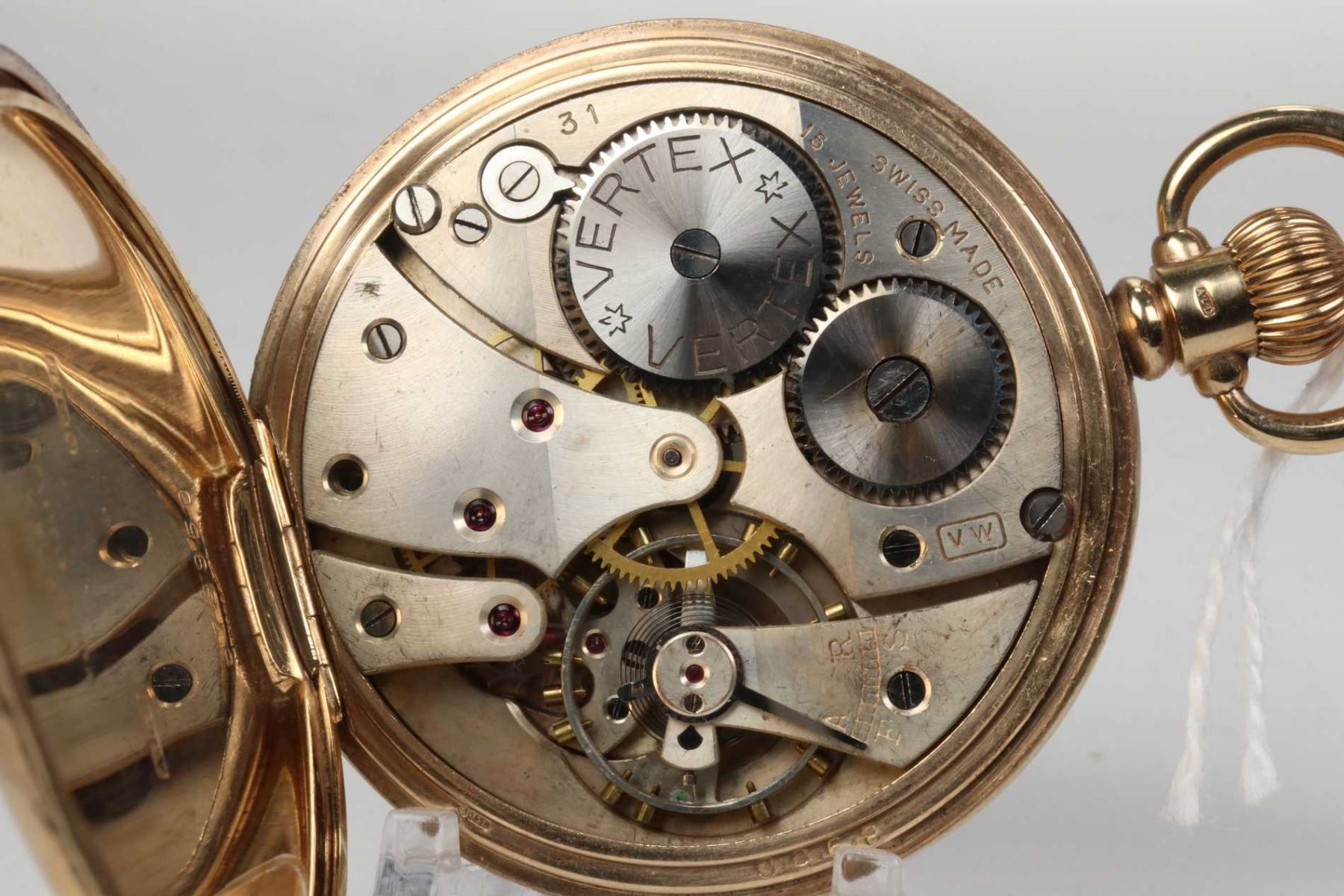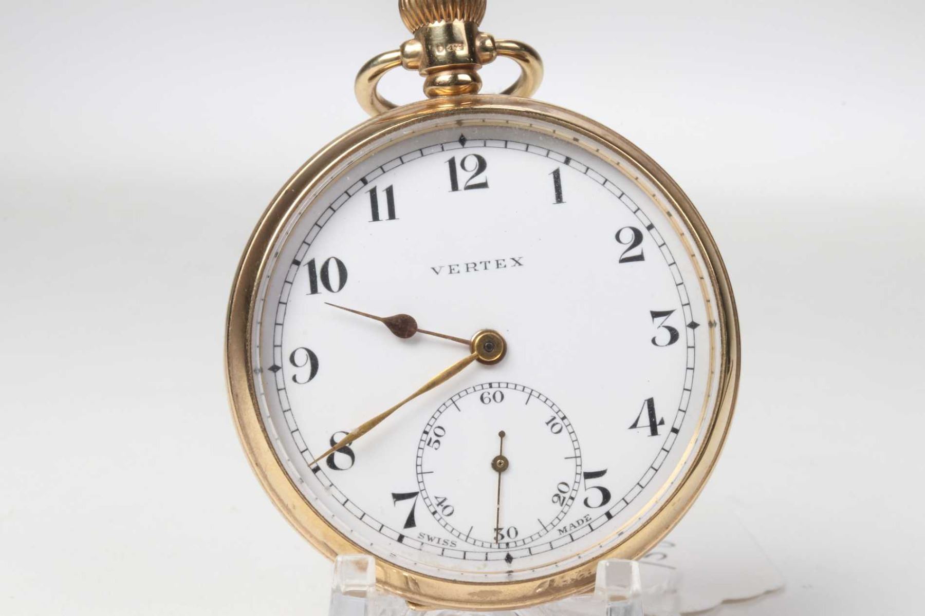 English made 9kt yellow gold, 15 jewel Vertex watch with gold case marked 375, white enamelled dial,