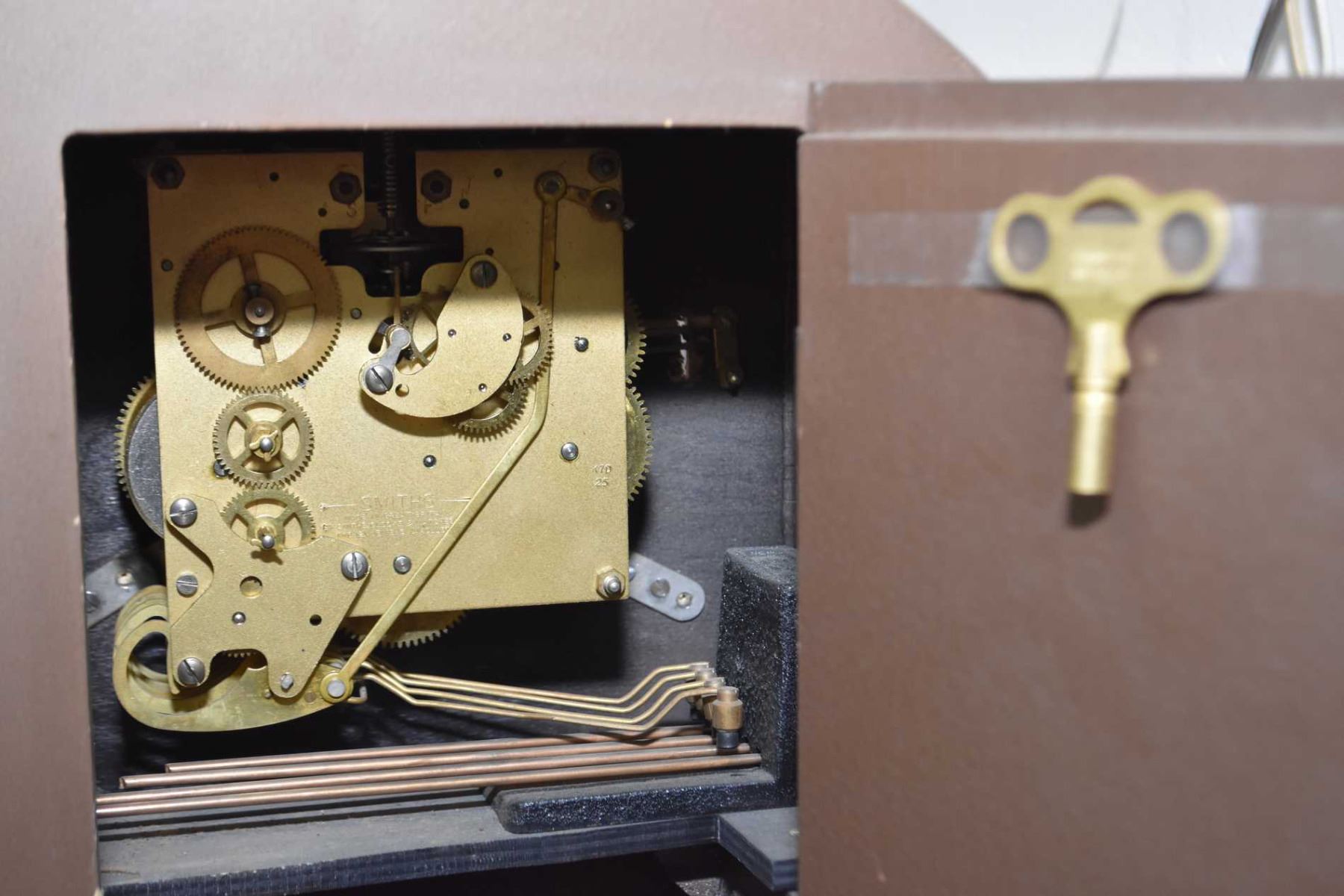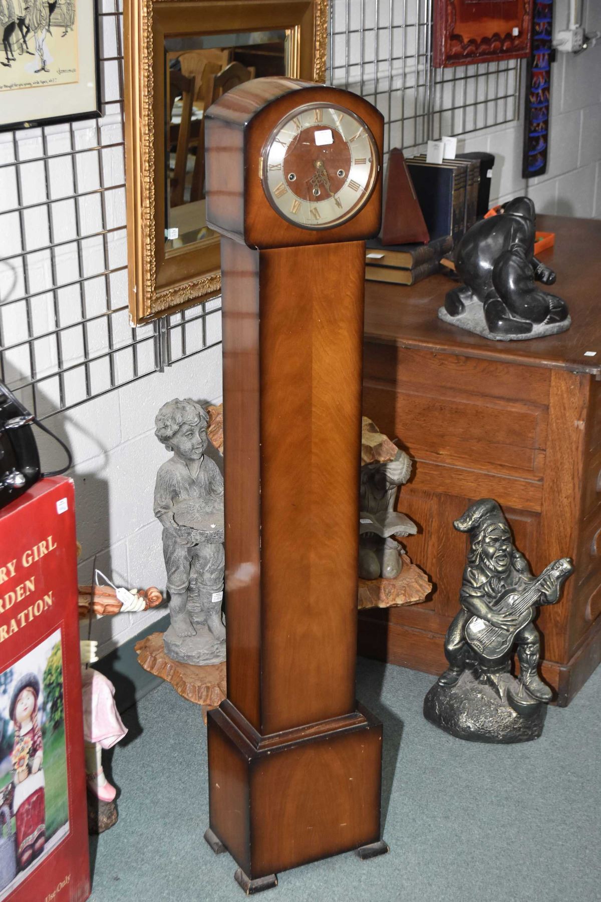 English made walnut cased chiming granddaughter's clock 52 1/2" in height, working at time of cataloguing, in need of a new crystal