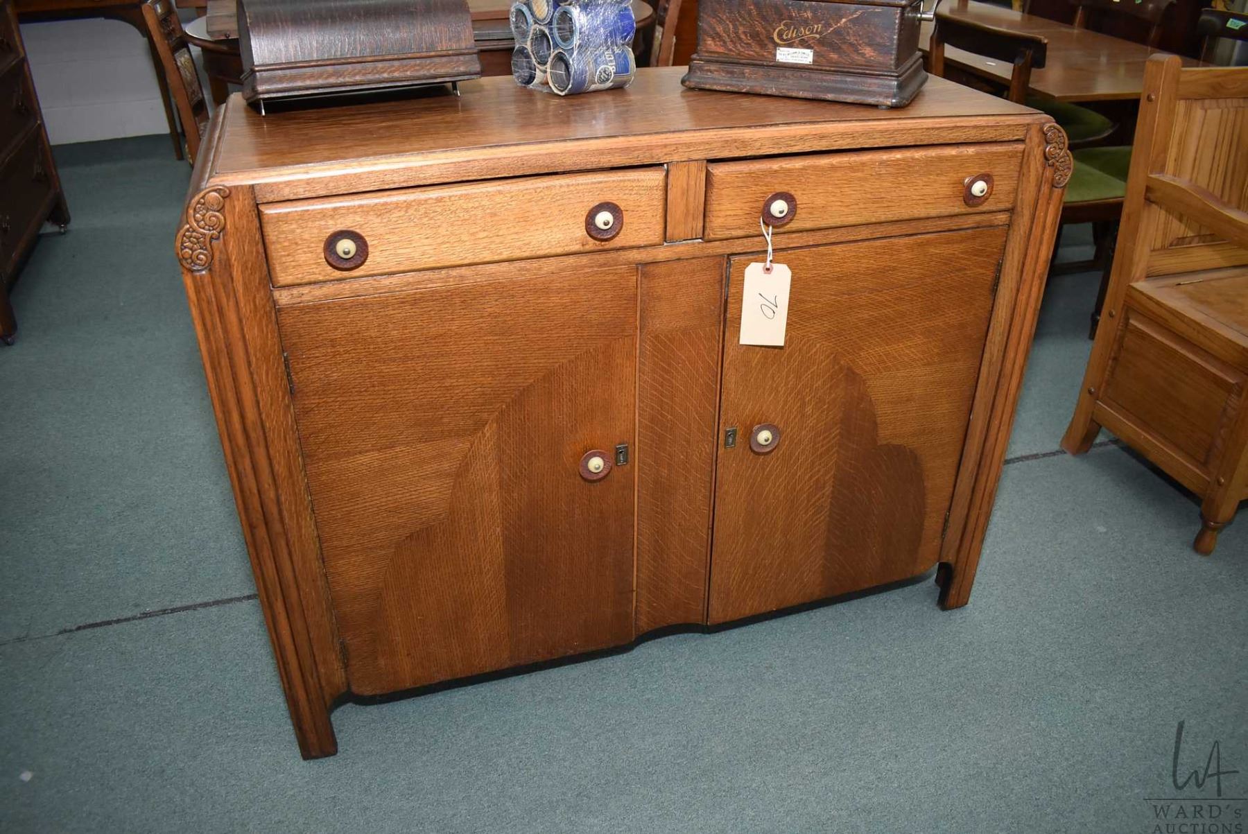 English quarter cut oak art deco sideboard with original door and drawer pulls
