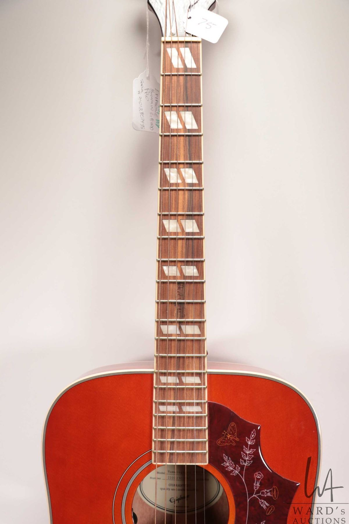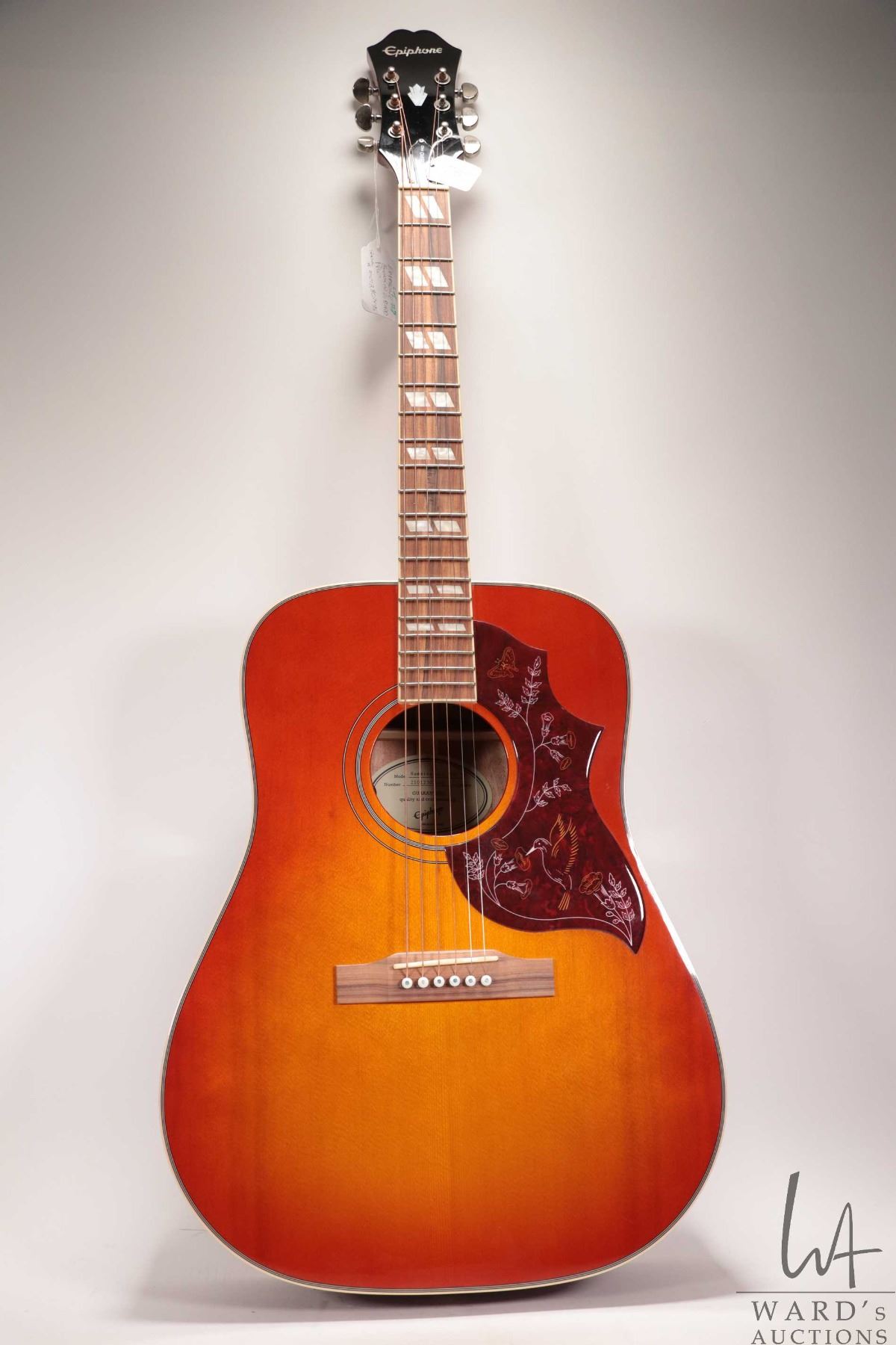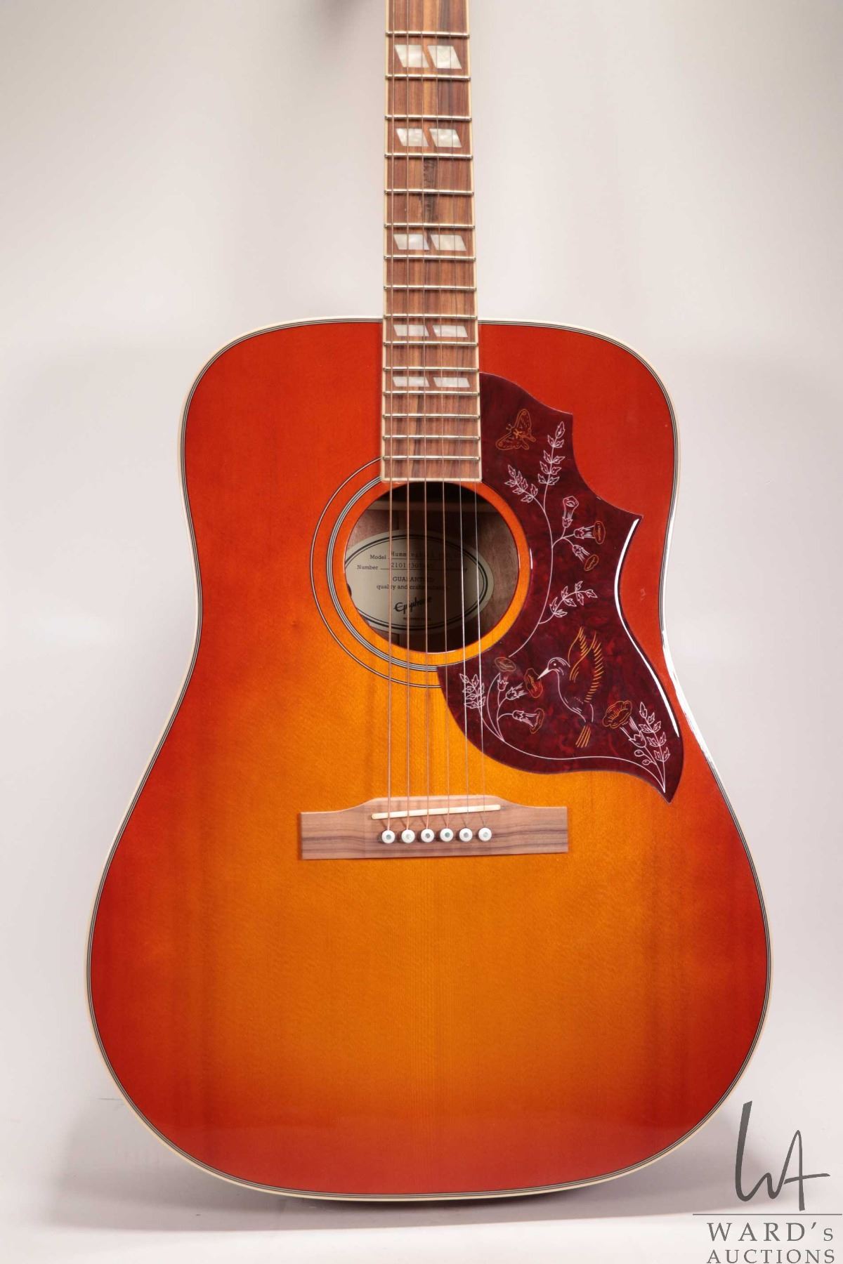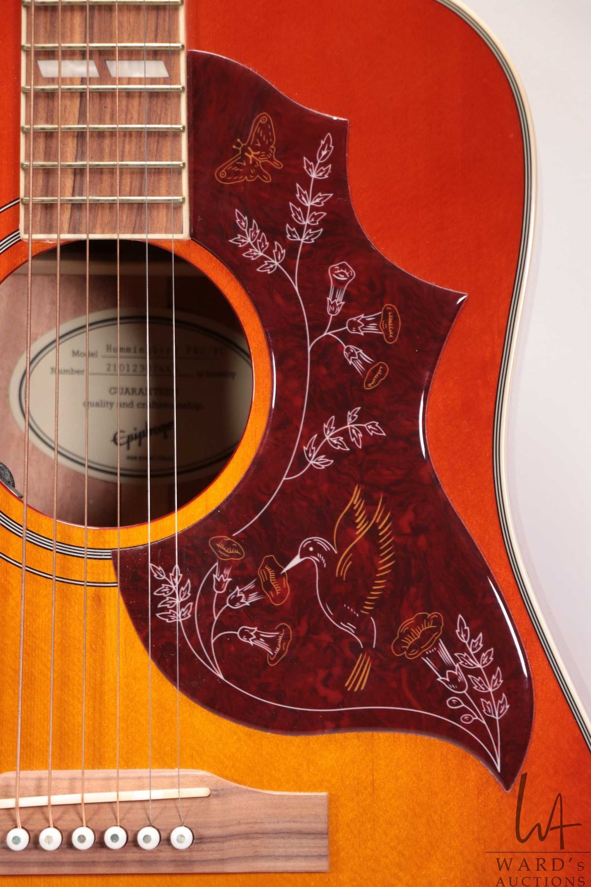 Epiphone Hummingbird Pro/ FC with decorative pick guard and ribbon grain mahogany back, Grover tuner
