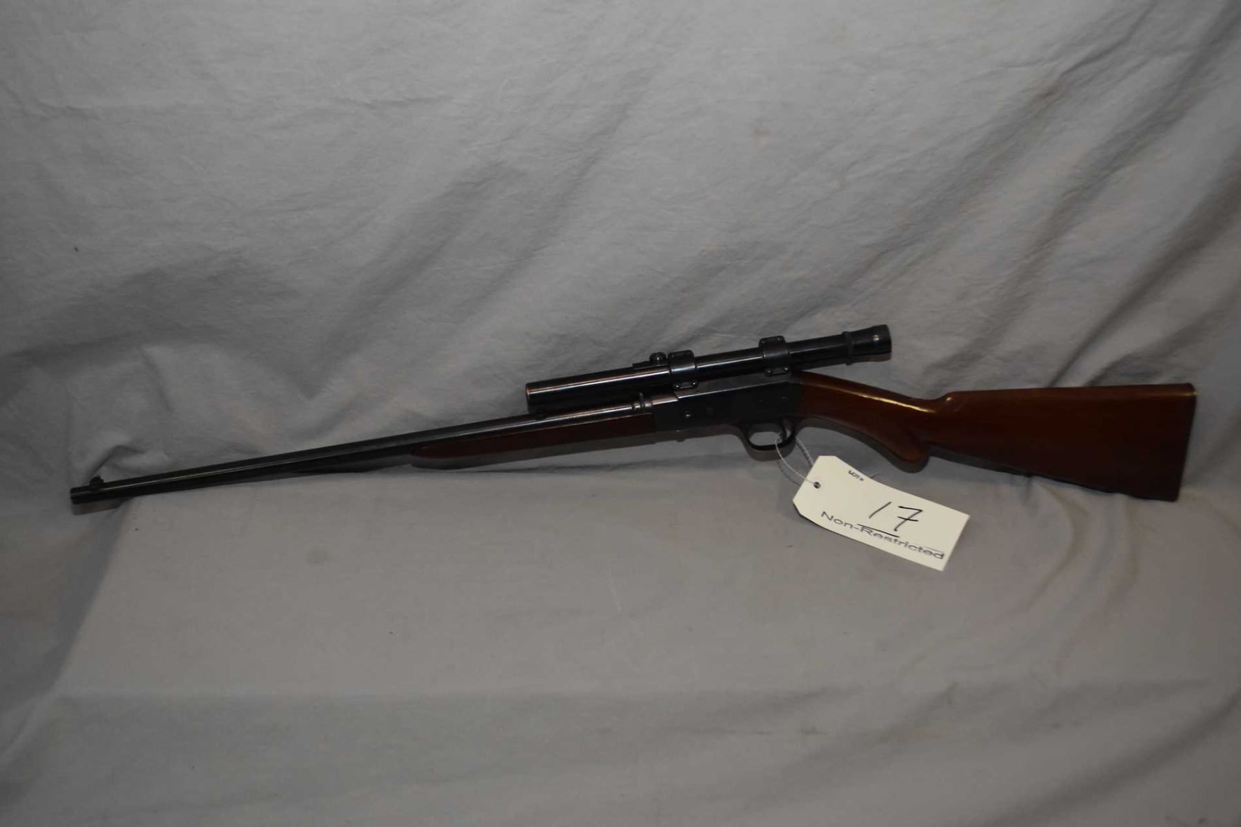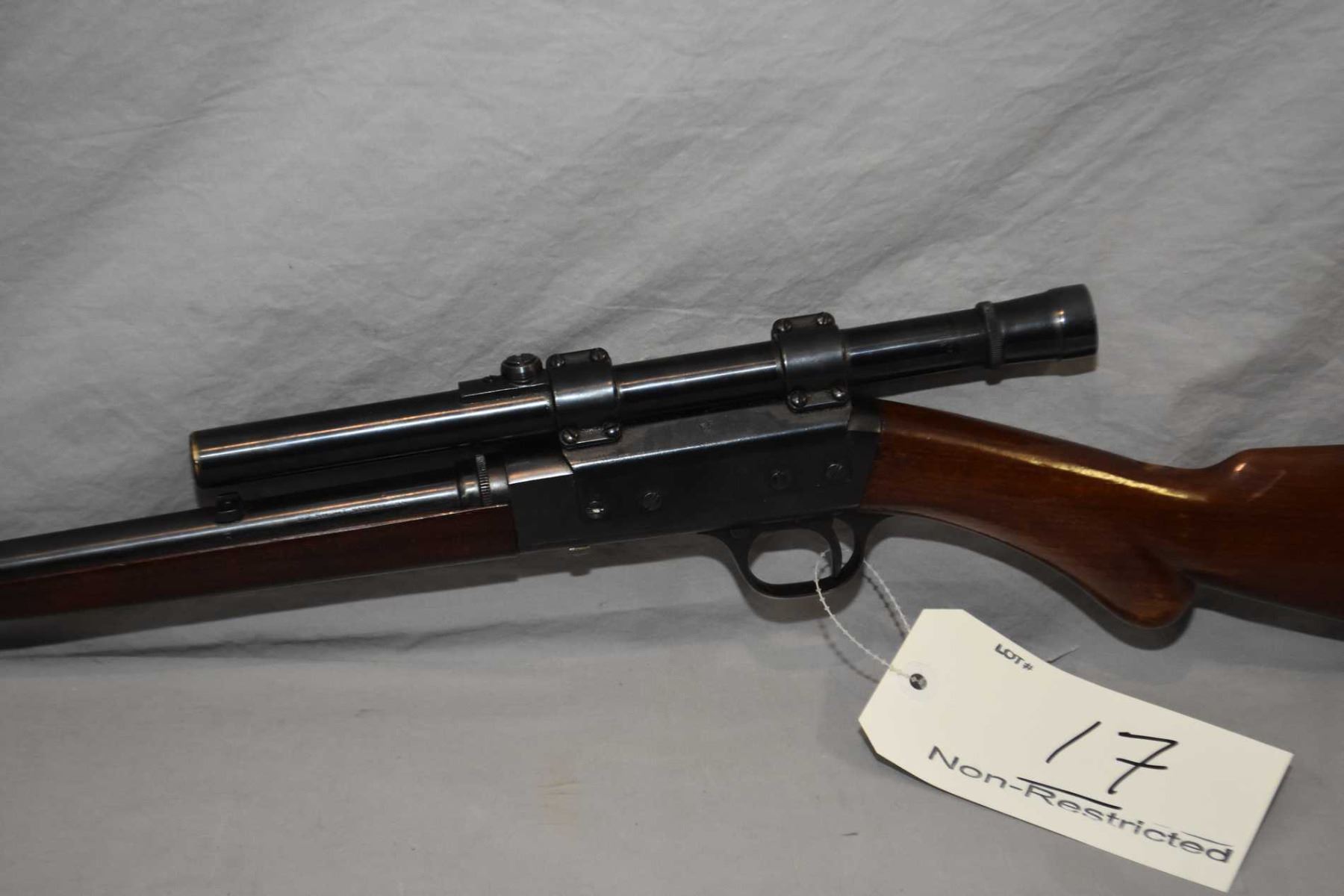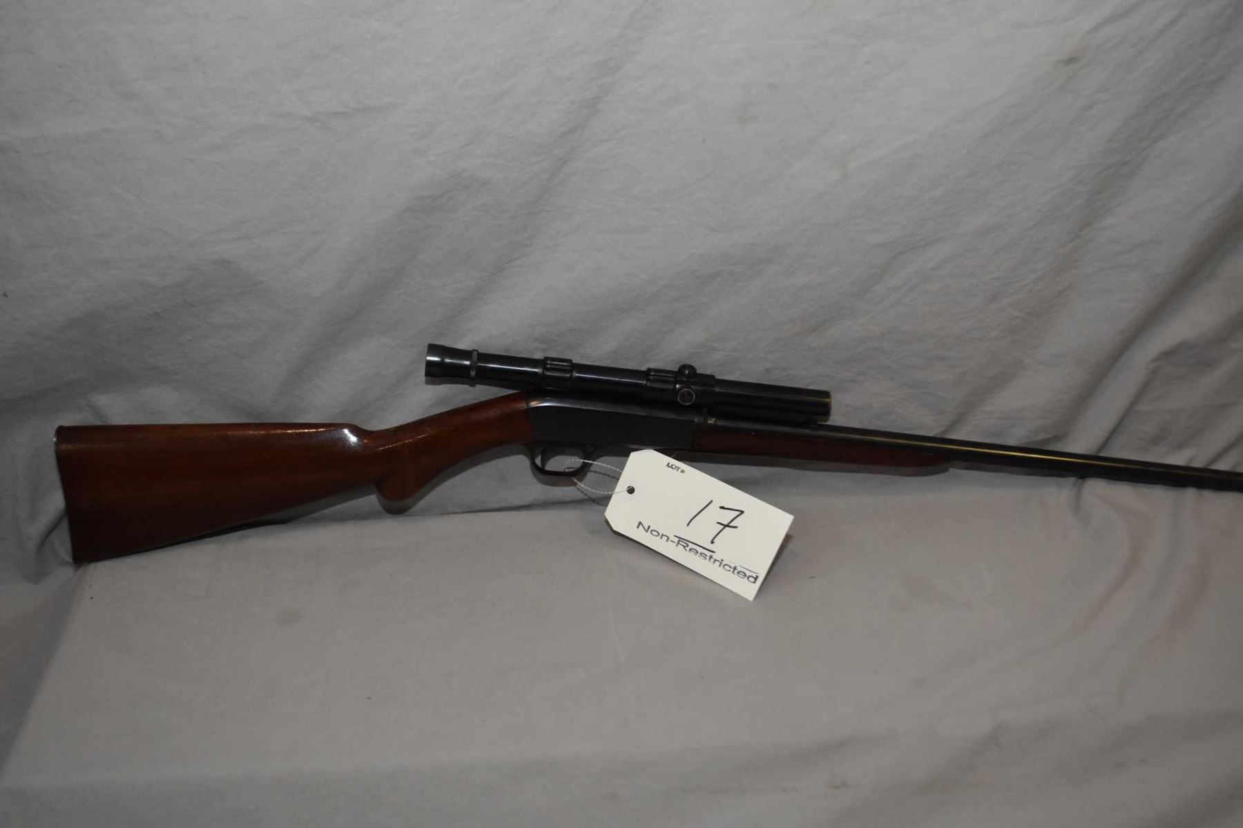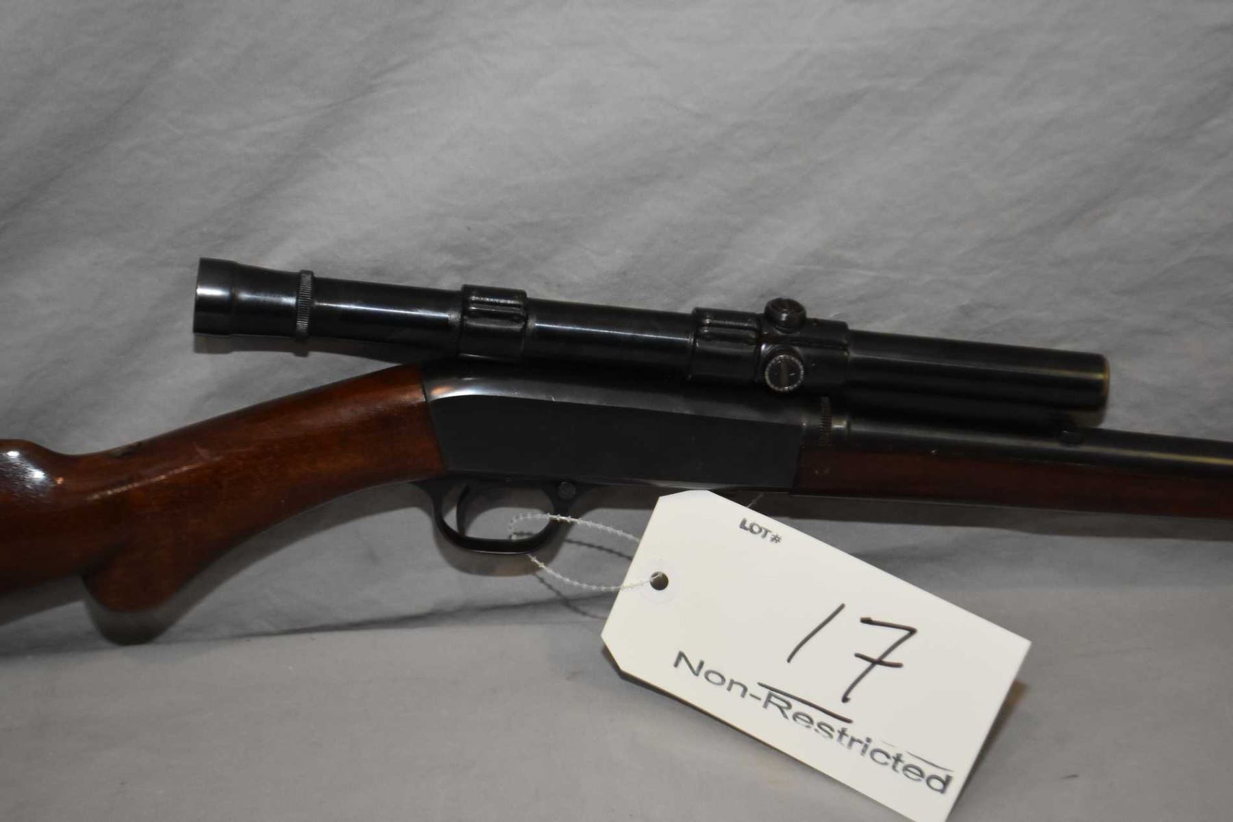 F.N. ( Browning's Patent ) Model 22 Auto .22 Short Cal Take Down Semi Auto Rifle w/ 19 1/4" bbl [ blued finish, part of back sight removed, also fitted w/ Weaver B4 Scope w/ side mount and rings, plain rounded pistol grip stock and forend, metal butt plate, w/ hole for mag tube ] Ser # 54415