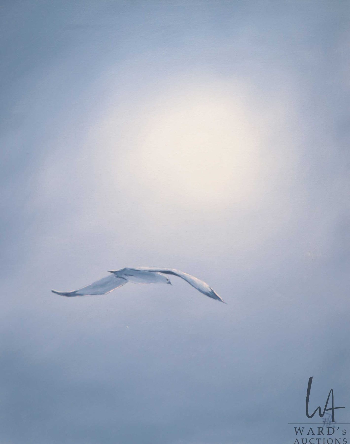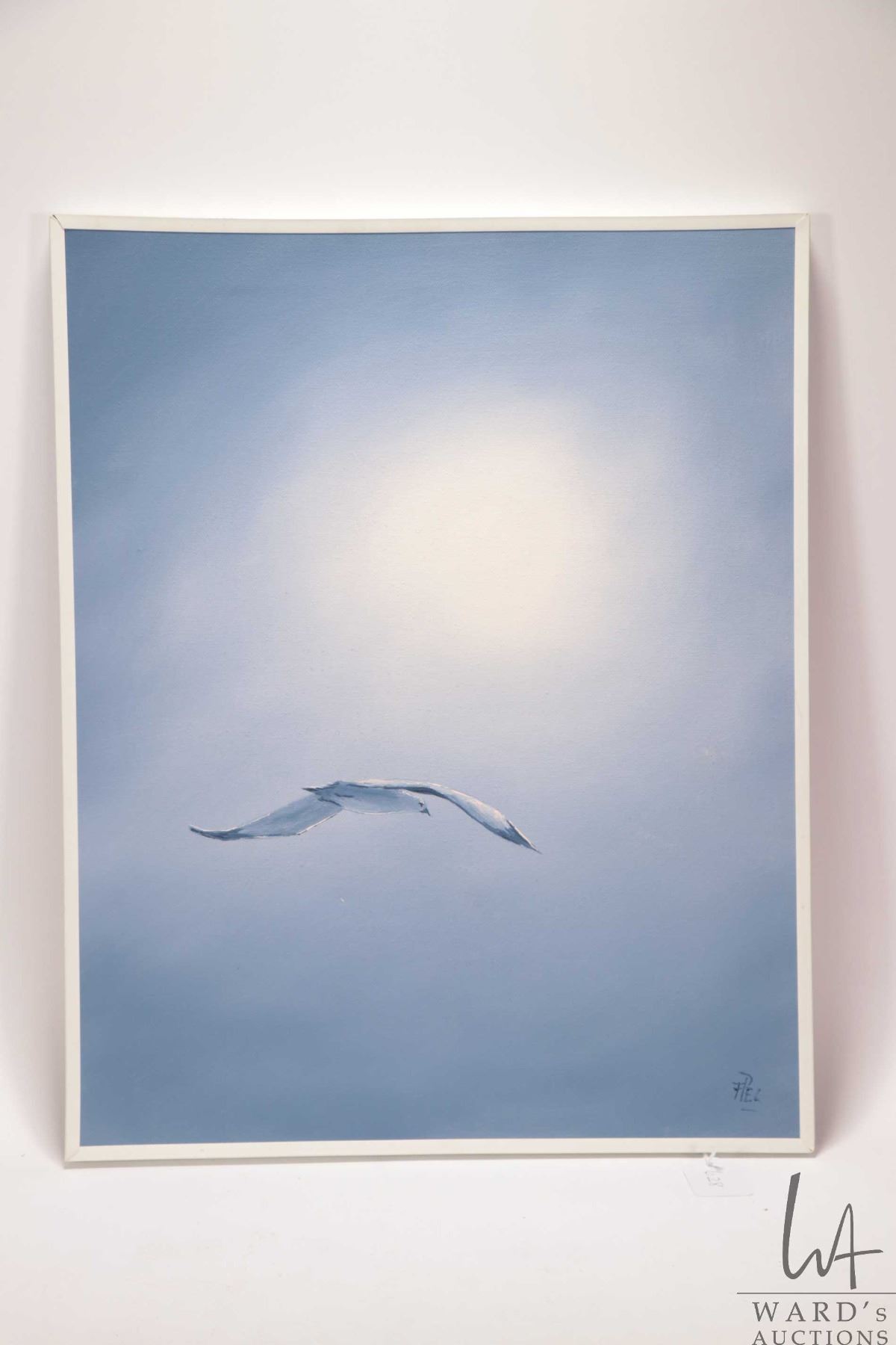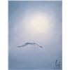 F. Pel original acrylic on canvas painting of a seagull, 19 1/2" X 15 1/4"