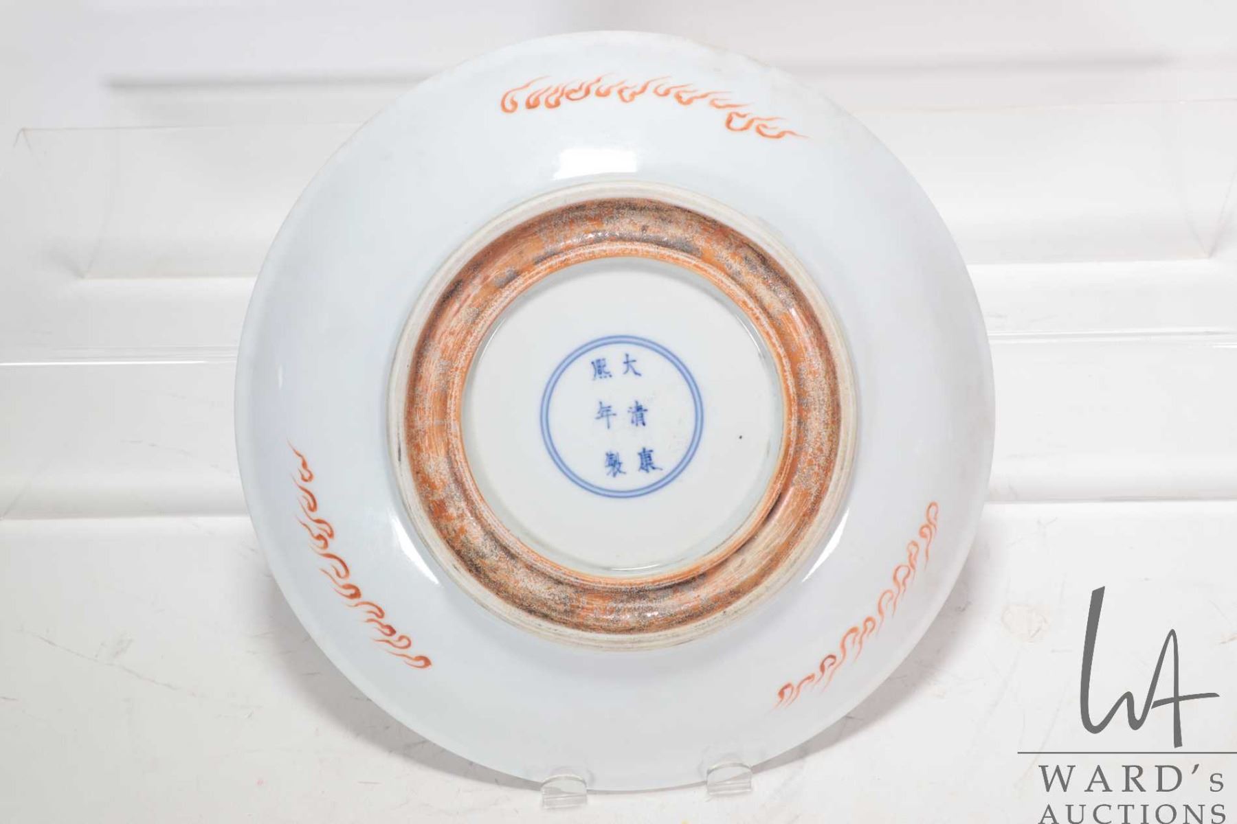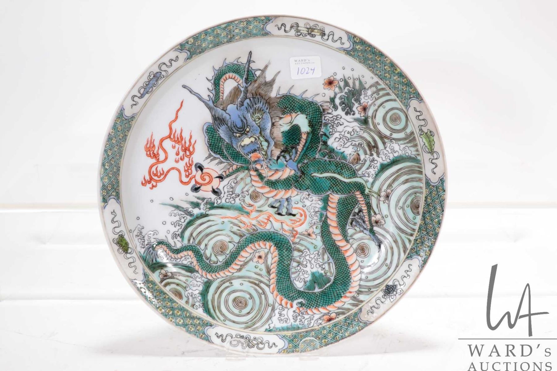 Famille verte handpainted dragon motif plate, 11 1/4"