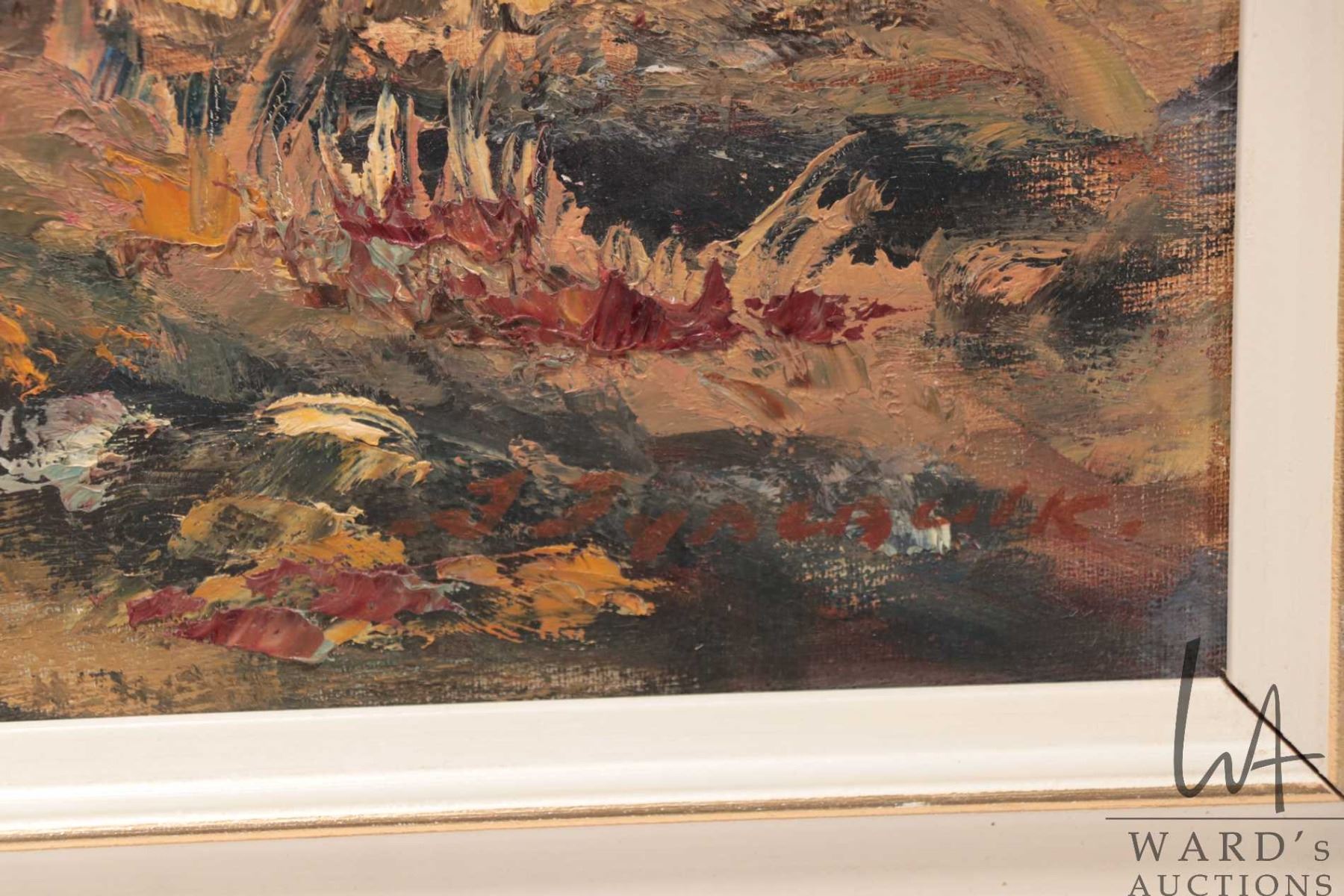 Fanny Tynebuin, framed acrylic on board painting titled "Fall In Seebe" 15-1/2" x 19-1/2"