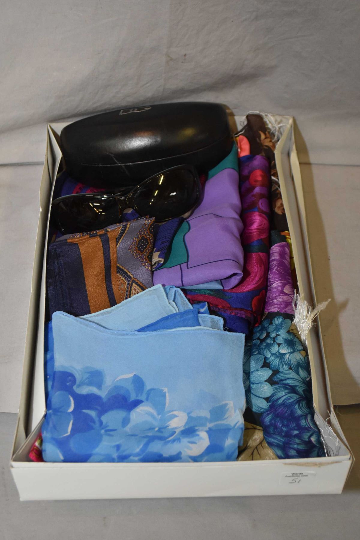 Fifteen silk scarves and a pair of Dolce & Gabbana sunglasses with case