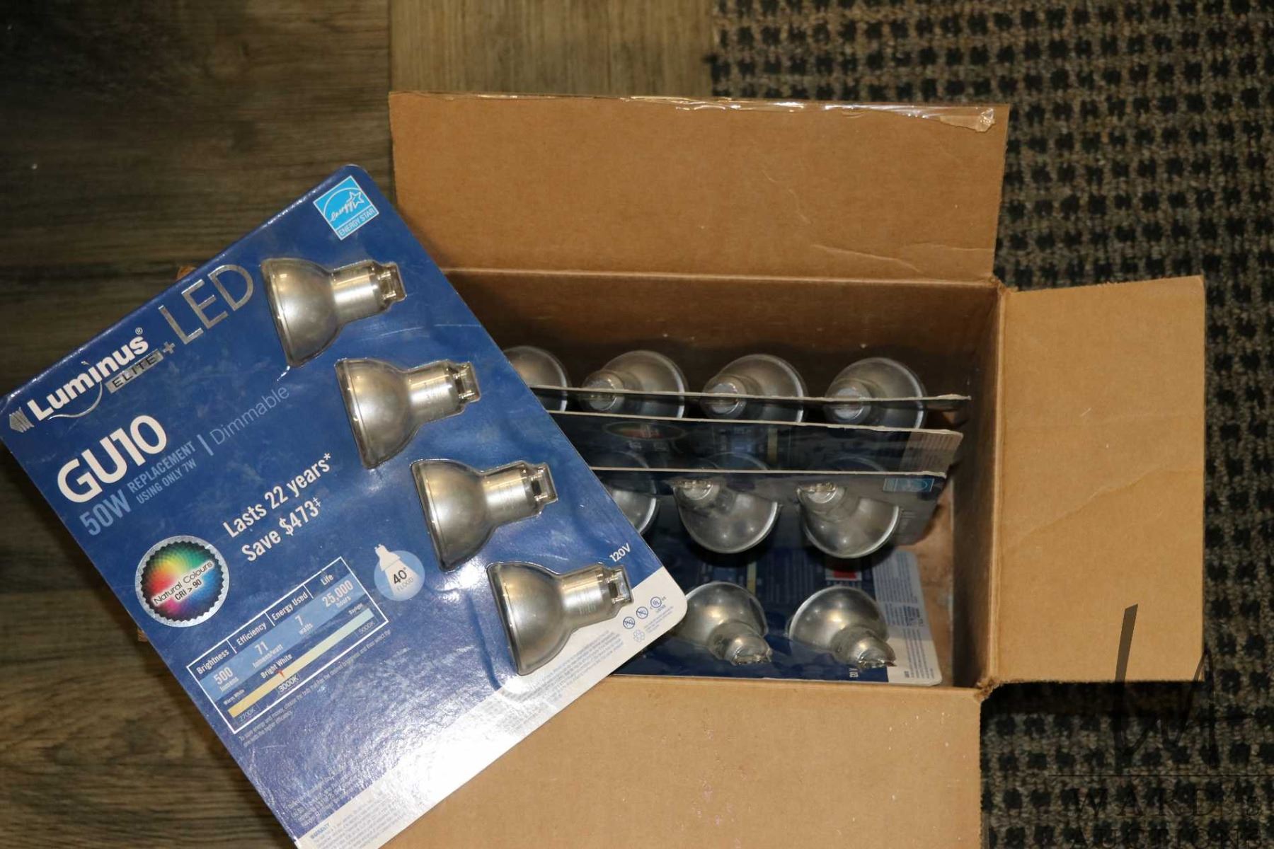 Five 4 count packs of Luminus LED GU10, 50 watt dimmable bulbs