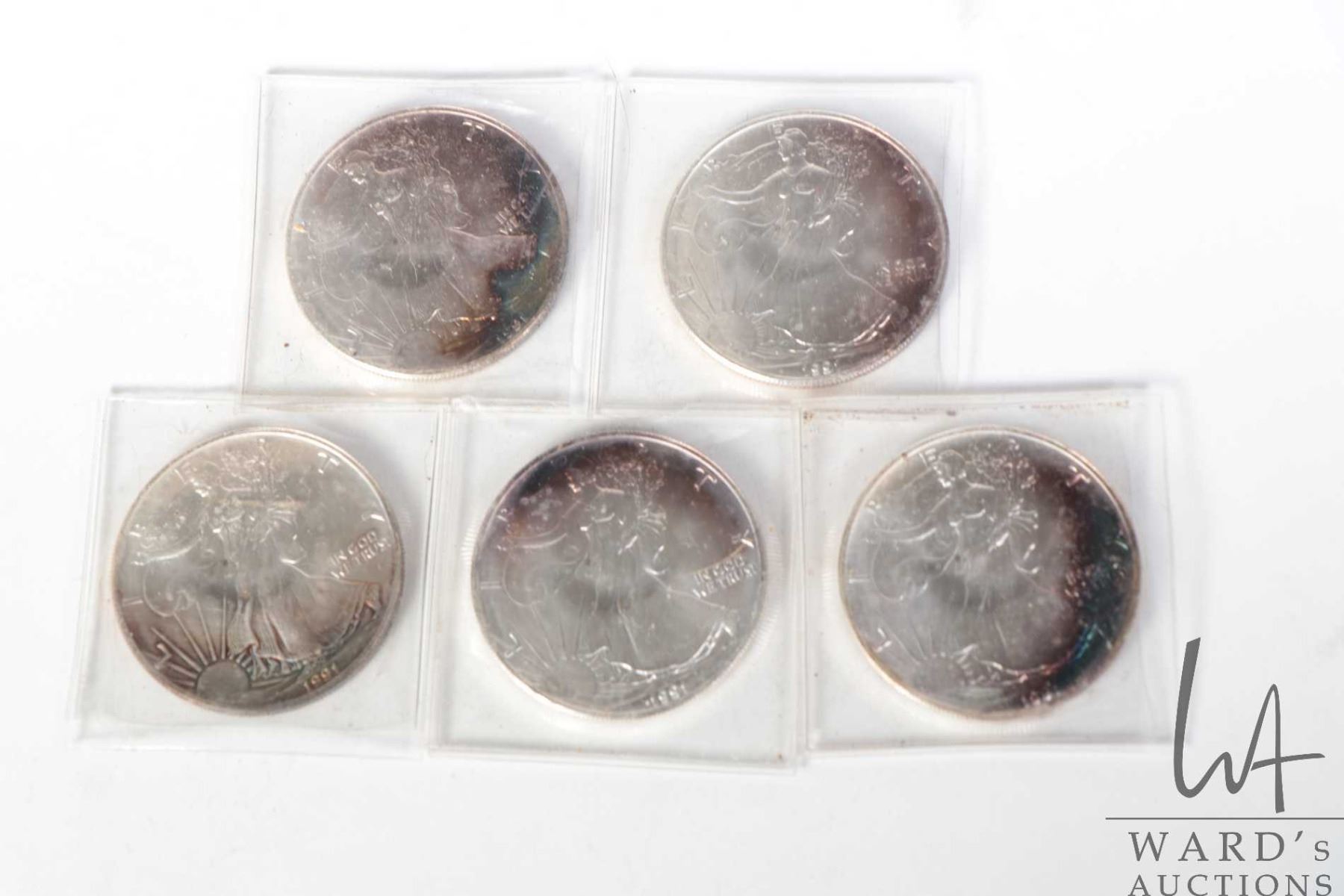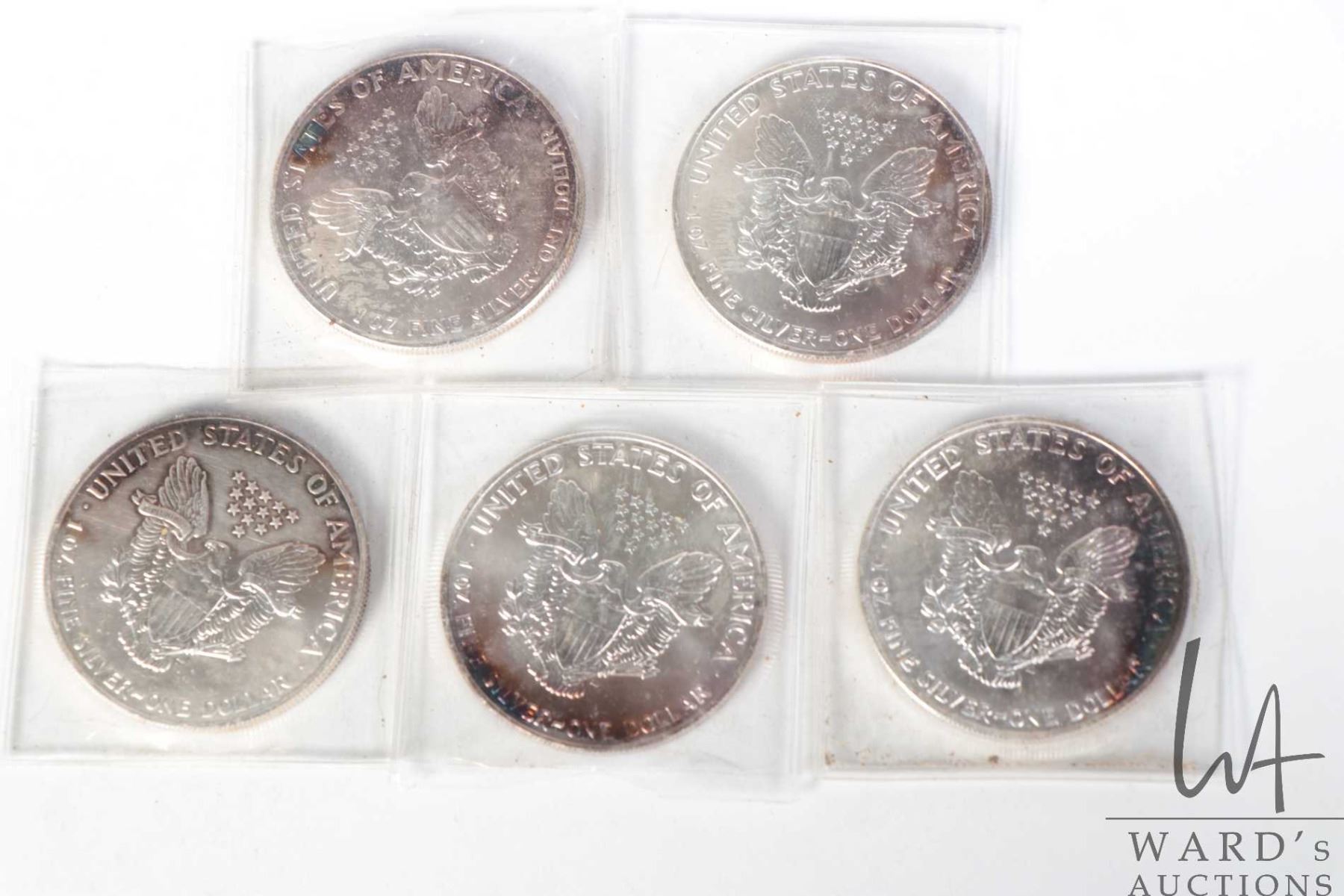 Five American fine 1 oz. silver Liberty dollar coins, all dated 1991