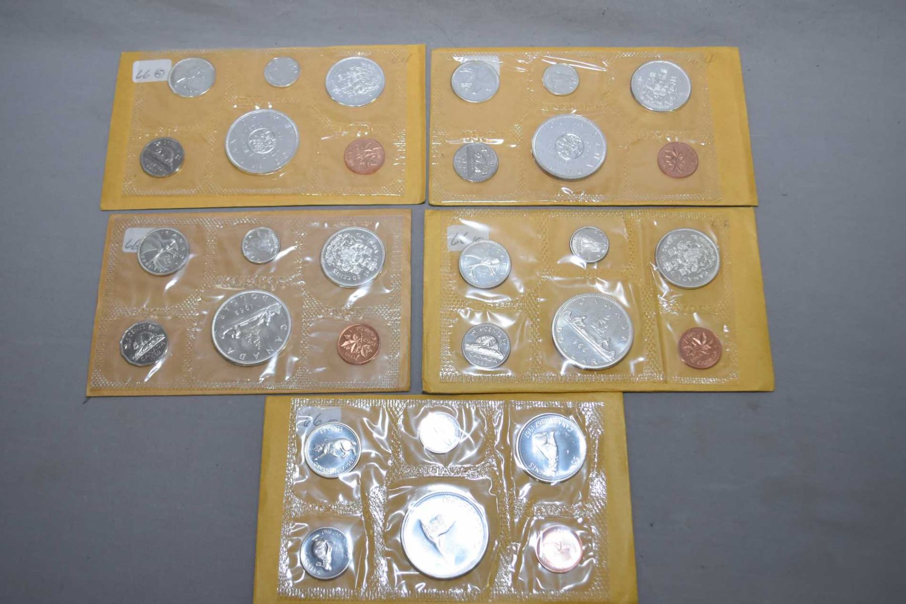 Five Canadian decimal coin sets including 1962, 2 X 1964, 1966 and 1967