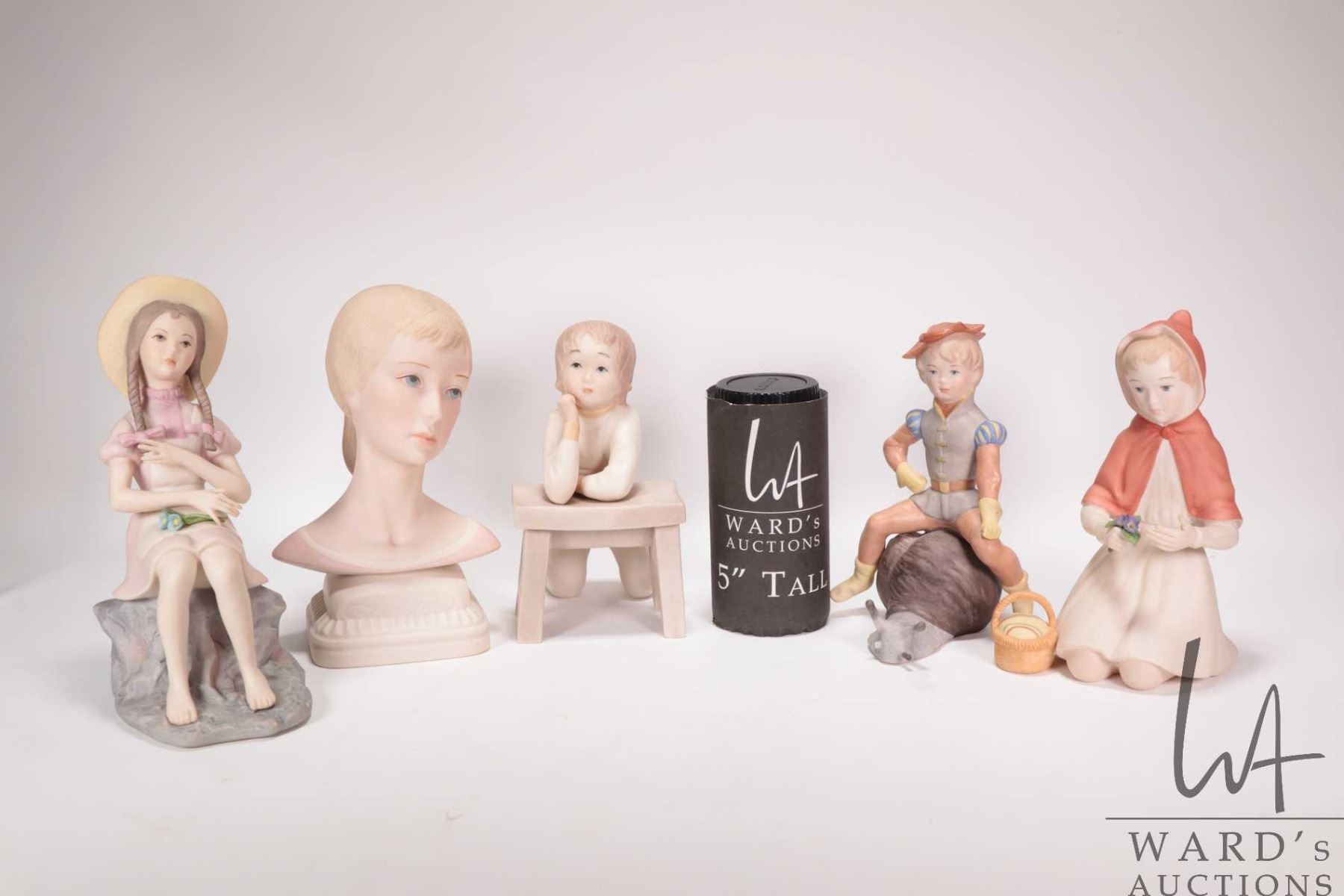 Five Laszlo Ispanky porcelain figures including 8" Heidi, Tom Thumb, bust of a girl etc.