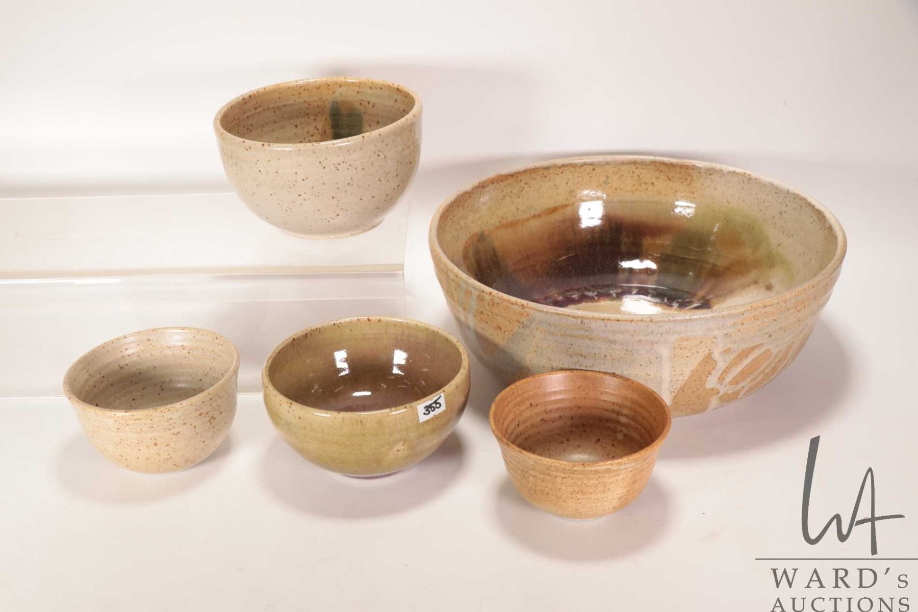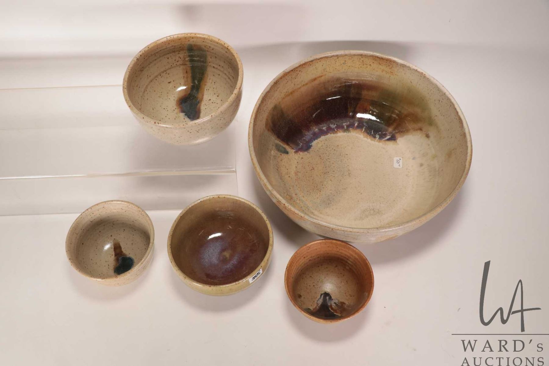 Five artisan made pottery bowls including 4 1/2" to 12" in diameters
