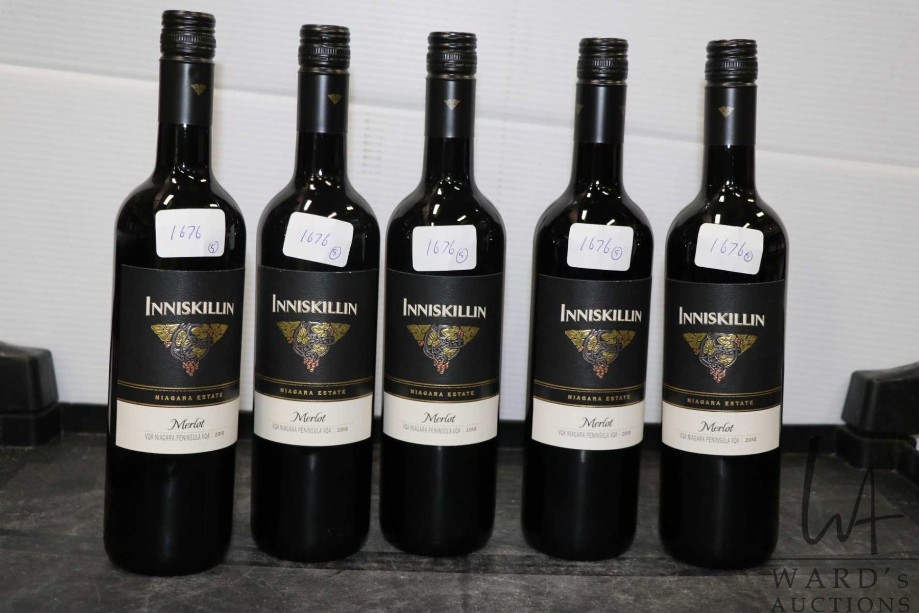 Five bottles of Inniskillin 2018 / Niagra Estate Merlot / 750ml / 13.5% ABV Note: Alcohol cannot be insured by any courier in Canada. Local pick up is recommended. Canadian bidders only