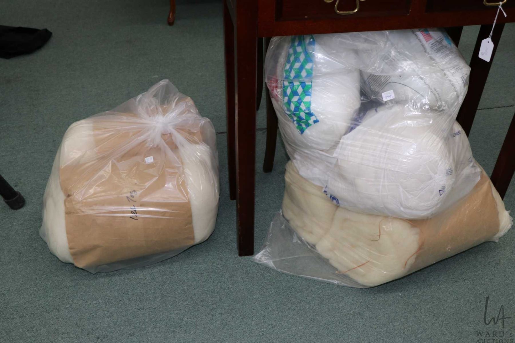 Five bundles of batting including fiberfill, and five bundles of wool batting