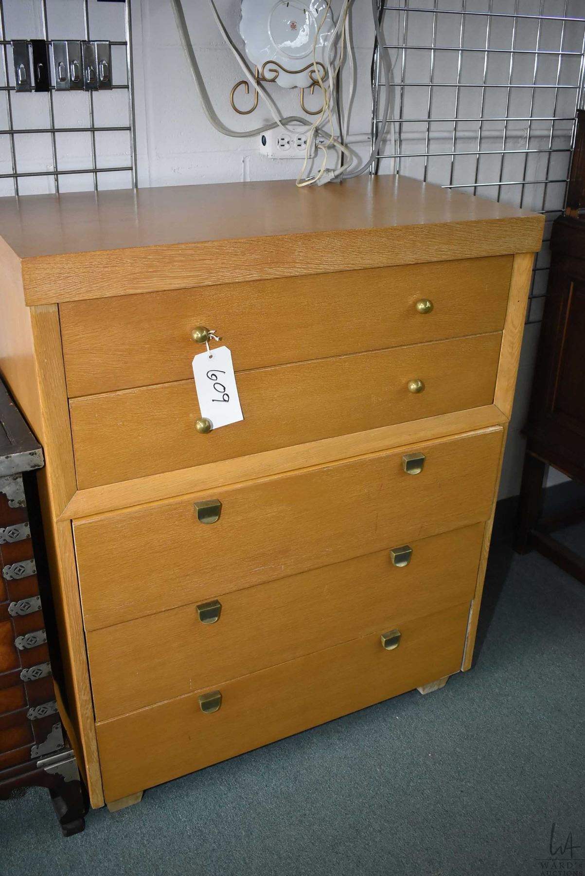 Five drawer 1950's oak highboy