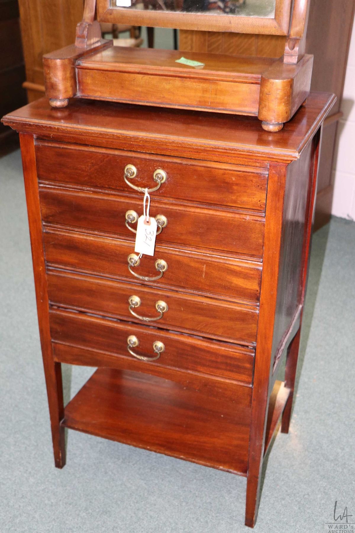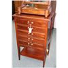 Five drawer mahogany music cabinet note each drawer front falls away for access when pulled out