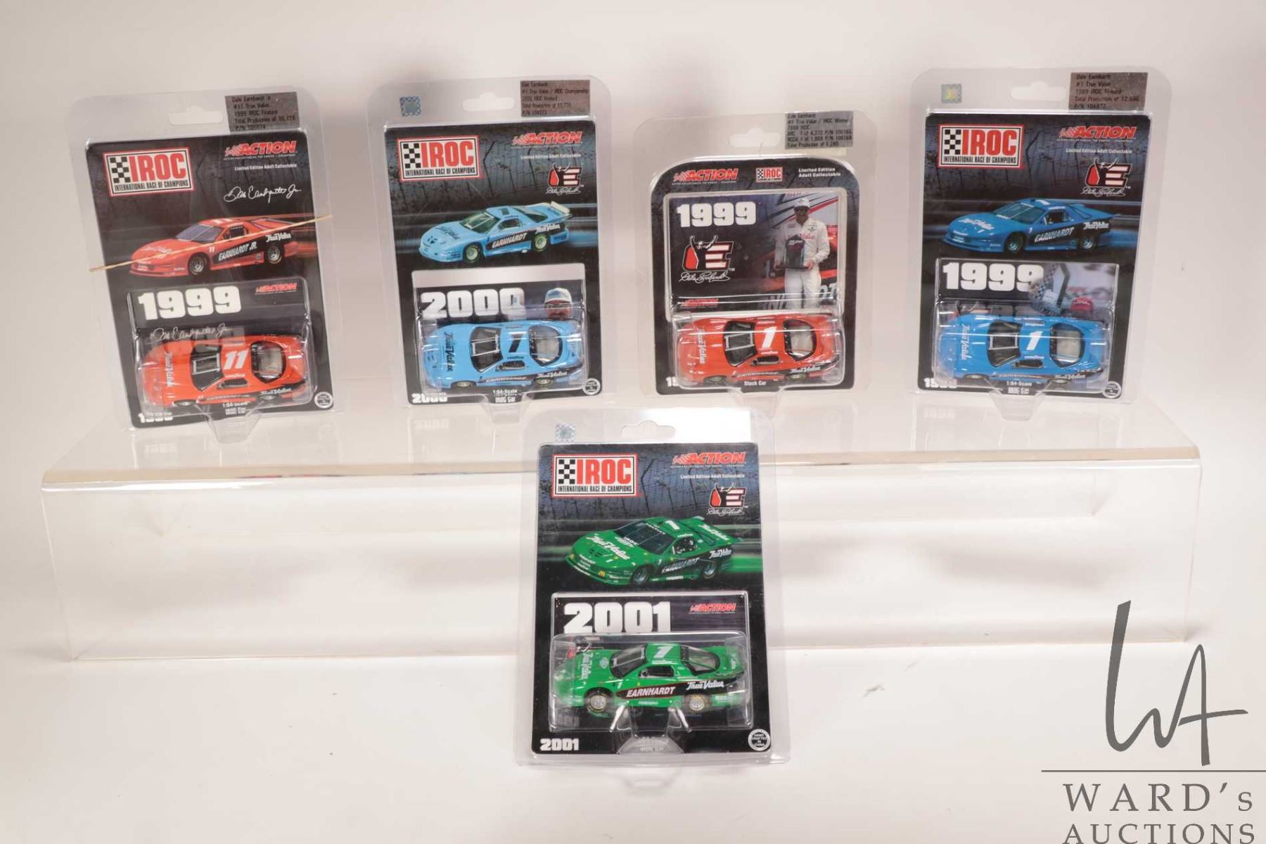 Five limited edition 1:64th scale Action collectible die cast IROC cars including four Dale Earnhardt and one Dale Earnhardt Jr.