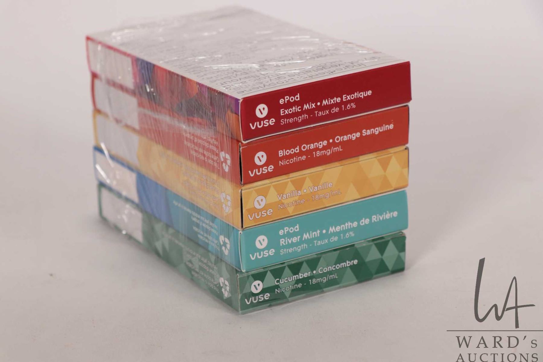 Five packages X 2 of Vuse nicotine pods including Exotic Mix, Blood Orange, River Mint, Vanilla and Cucumber Note: Age appropriate Canadian buyers only