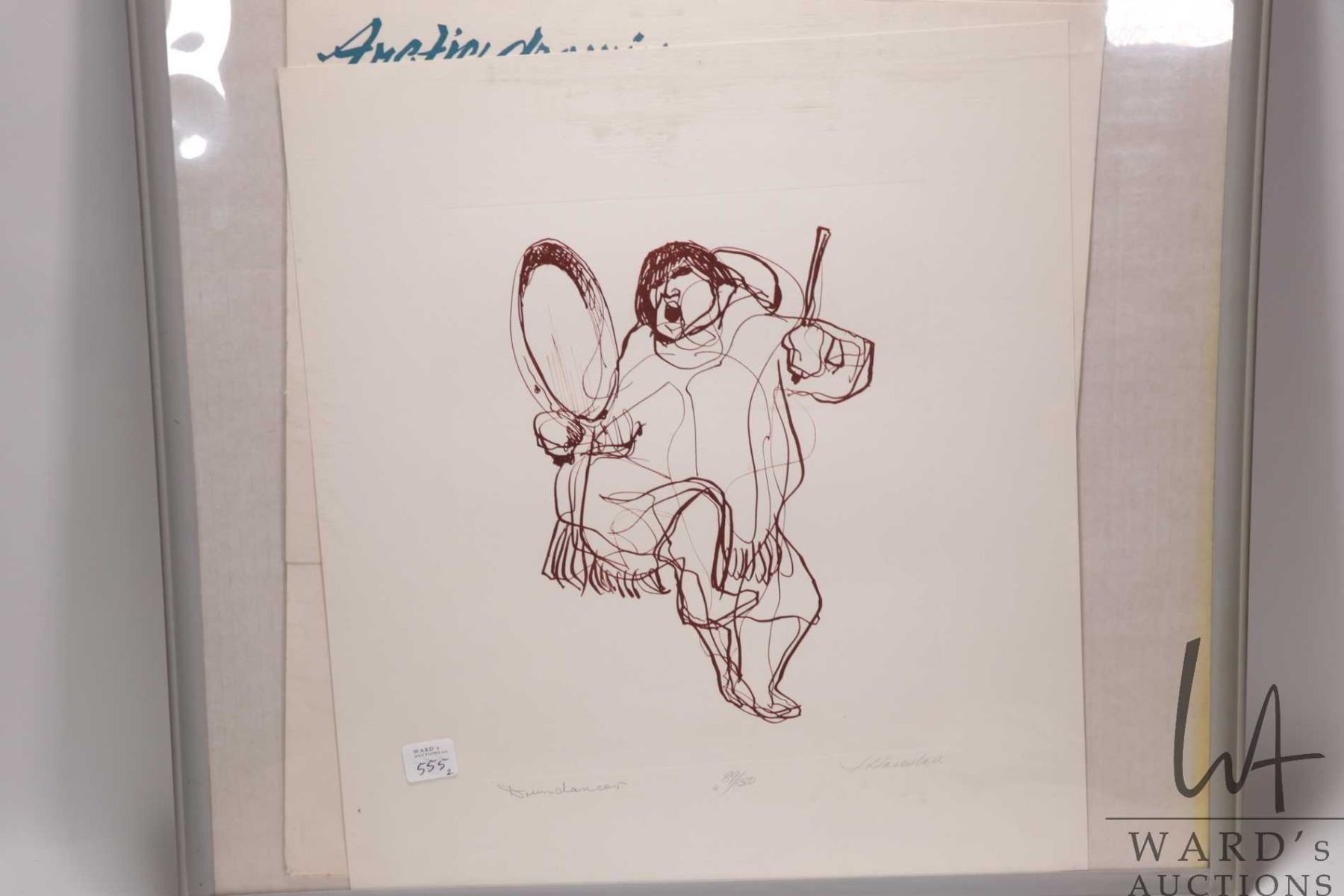Folio containing two Inuit limited edition prints by James Houston including "Fisherman" 129/150 and "Drum Dancer" 89/150 each pencil signed and 17" X 15"