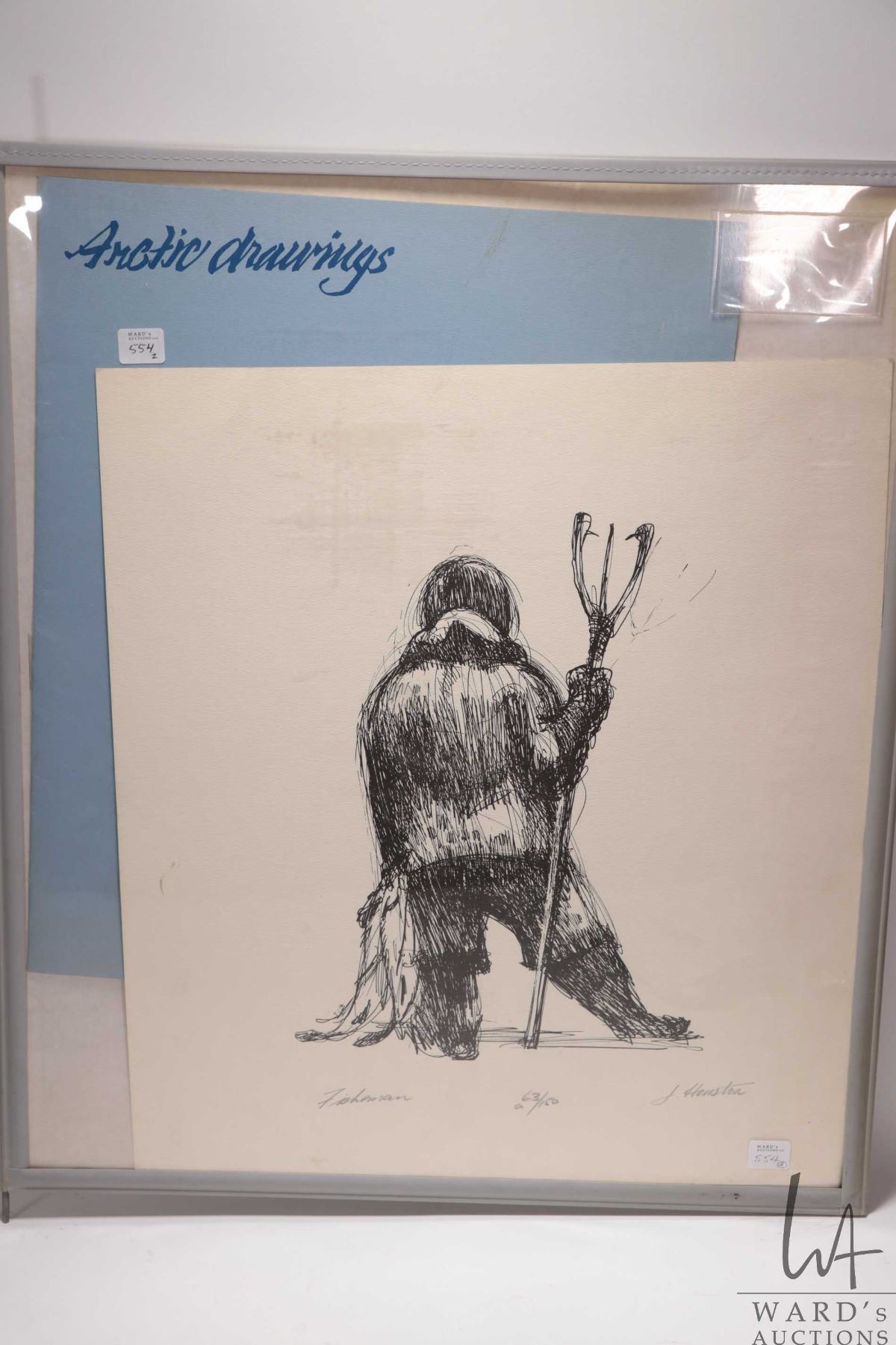 Folio containing two James Houston limited edition prints including "Fisherman" 63/150, 20" X 17" an