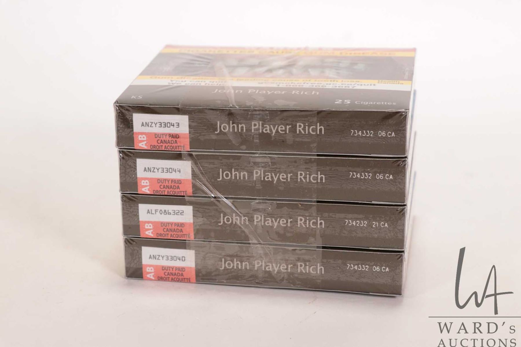 Four 25 count packages of John Player Rich king sized cigarettes Note: Age appropriate Canadian buyers only