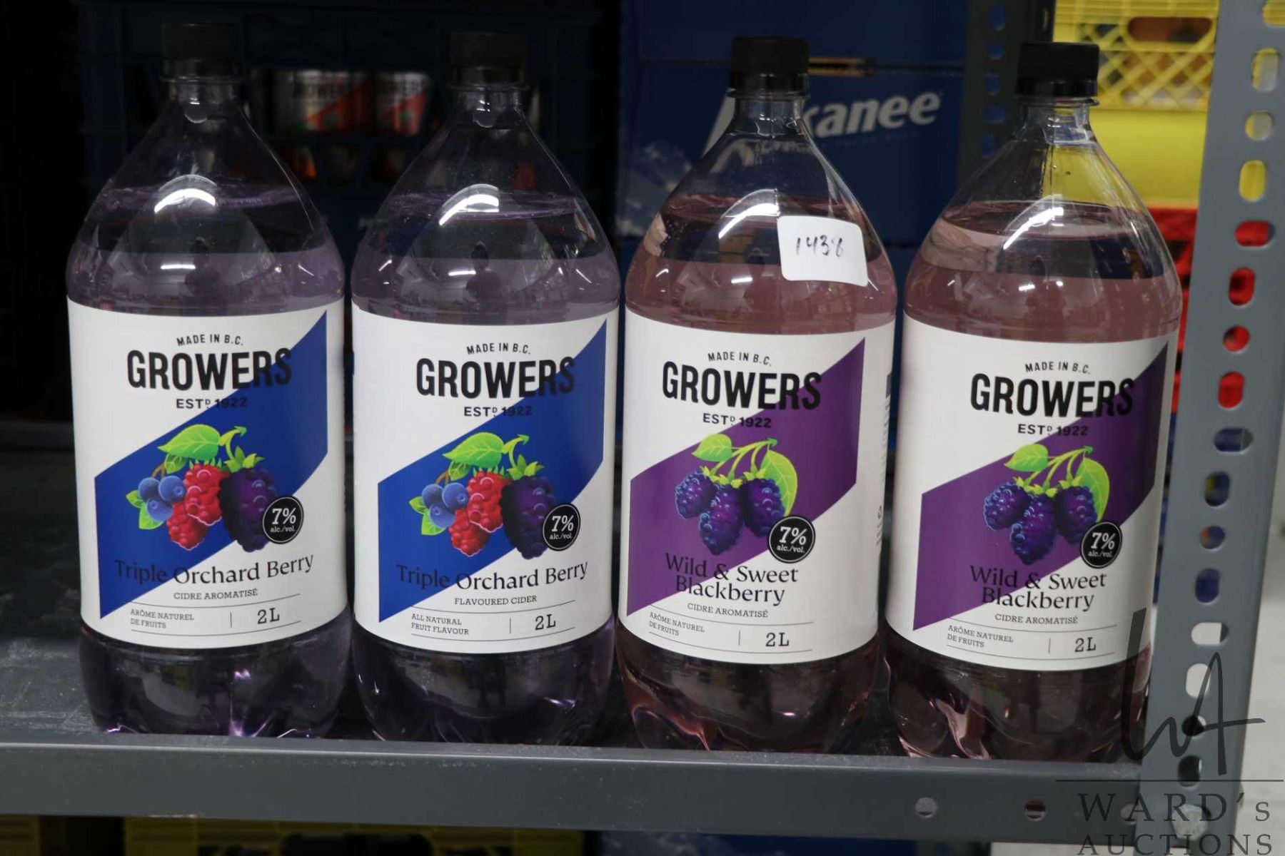 Four 2L bottles of Growers Direct flavoured cider including two Triple Orchard Berry 7.0% ABV and two Wild & Sweet Blackberry 7.0% ABV Note: Alcohol cannot be insured by any courier in Canada. Local pick up is recommended. Canadian bidders only