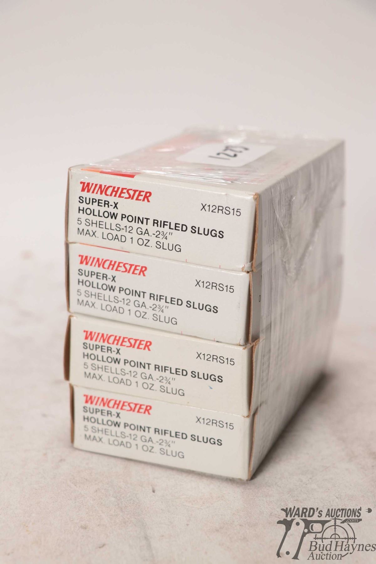 Four 5 count boxes of Winchester Super X 12 ga Four 5 count boxes of Winchester Super X 12 ga hollow point rifled slugs