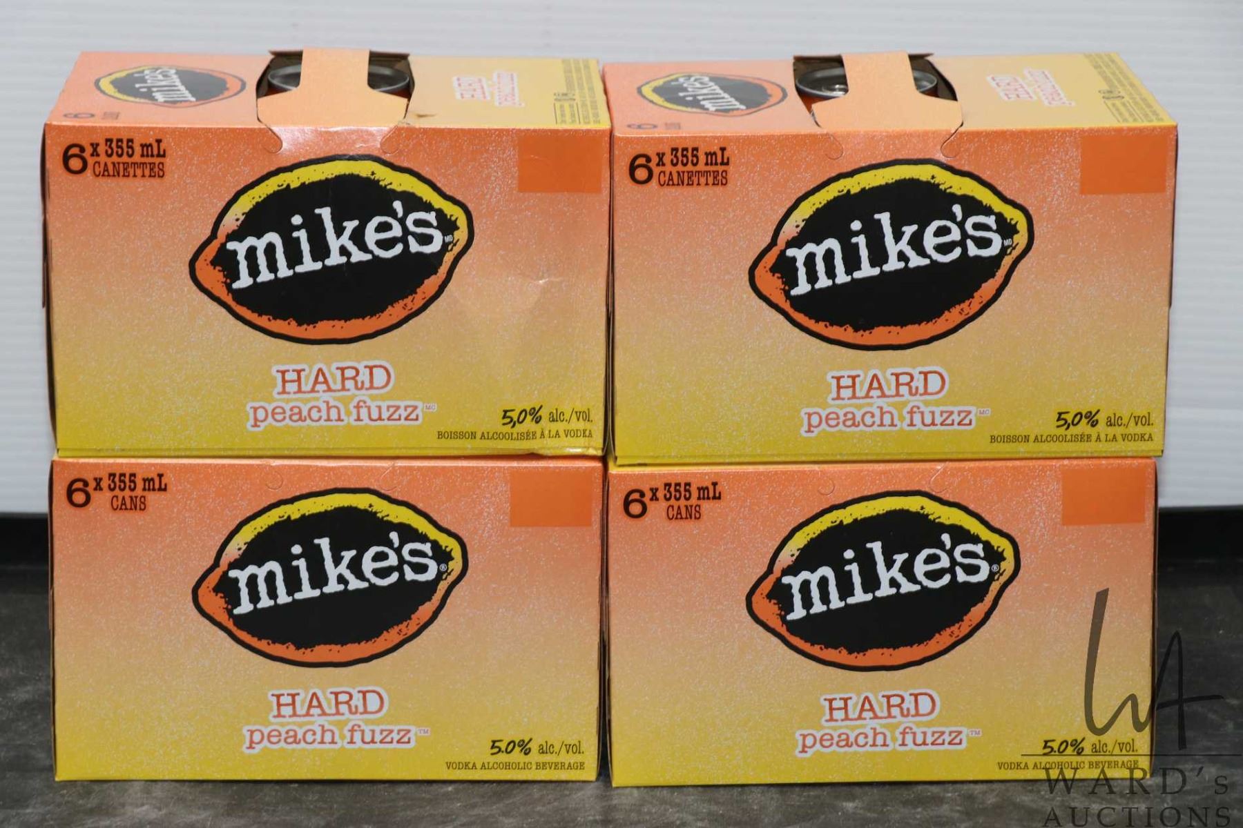 Four 6 packs of Mike's Hard Peach Fuzz/ 24 count X 355ml/ 5.0% ABV Note: Alcohol cannot be insured by any courier in Canada. Local pick up is recommended. Canadian bidders only