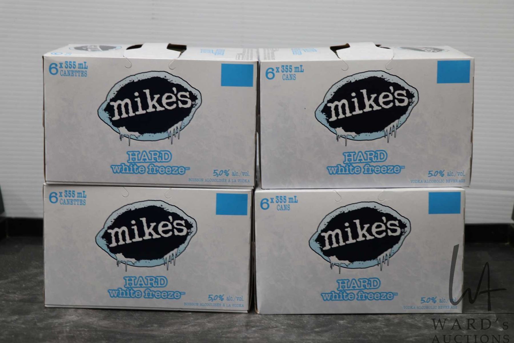 Four 6 packs of Mike's Hard White Freeze / 24 count X 355ml / 5.0% ABV Note: Alcohol cannot be insured by any courier in Canada. Local pick up is recommended. Canadian bidders only