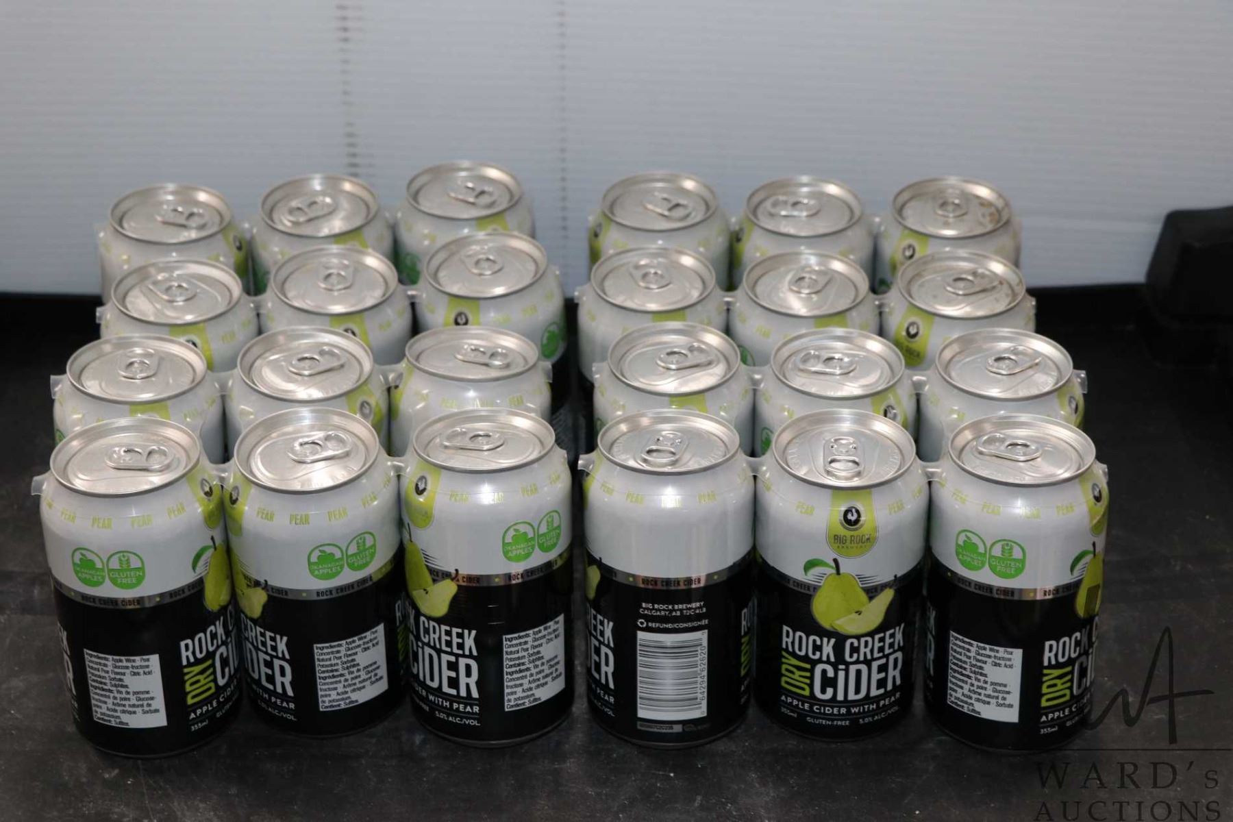 Four 6 packs of Rock Creek Apple Cider With Pear Dry Cider 24 count x 355 ml / 5.0% ABV Note: Alcohol cannot be insured by any courier in Canada. Local pick up is recommended. Canadian bidders only