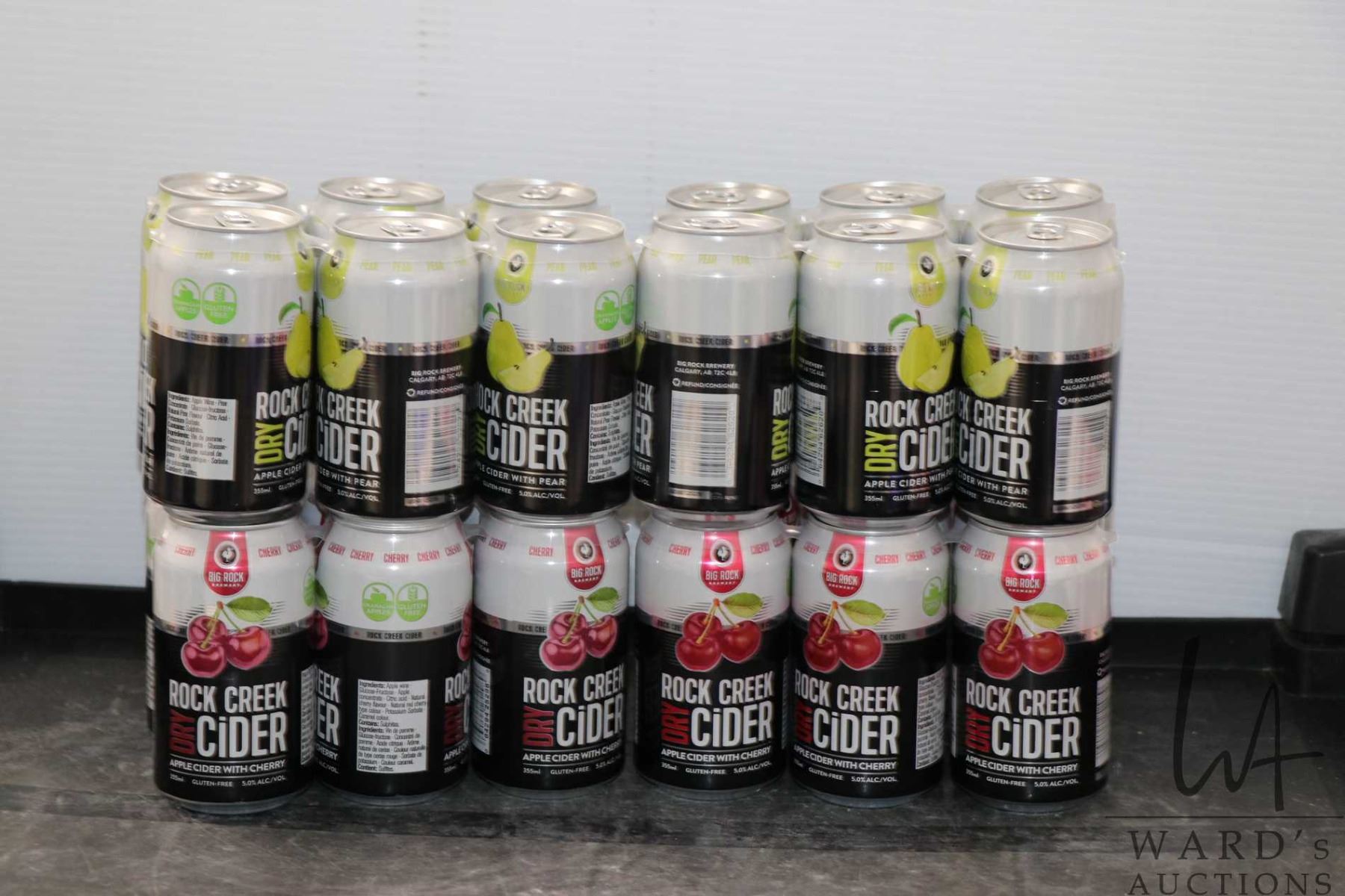 Four 6 packs of Rock Creek dry ciders including two packs Apple Cider With Pear and two packs Apple Cider With Cherry 24 count x 355ml / 5.0% ABV Note: Alcohol cannot be insured by any courier in Canada. Local pick up is recommended. Canadian bidders only