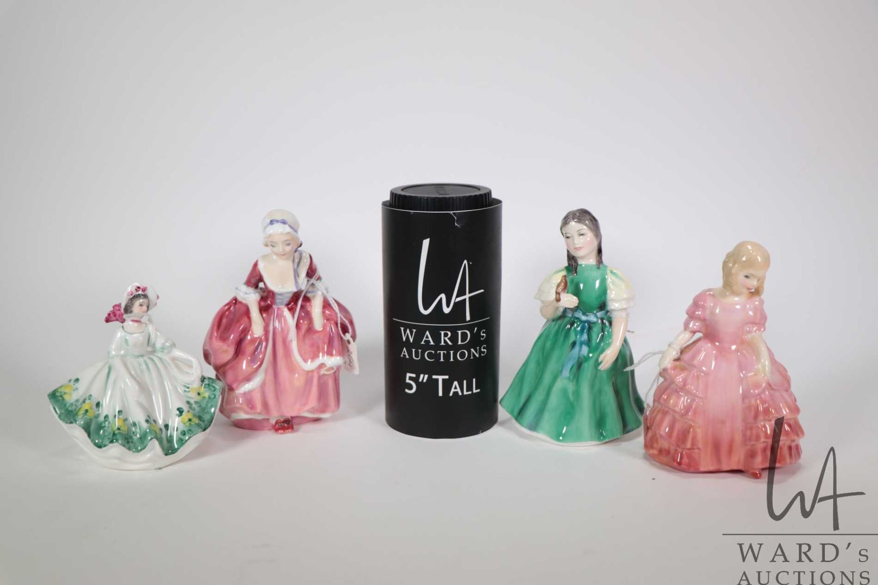 Four Royal Doulton figurines including Francine HN2422, Goody Two Shoes HN2037, Rose HN1362 and Sunday Best HN3218
