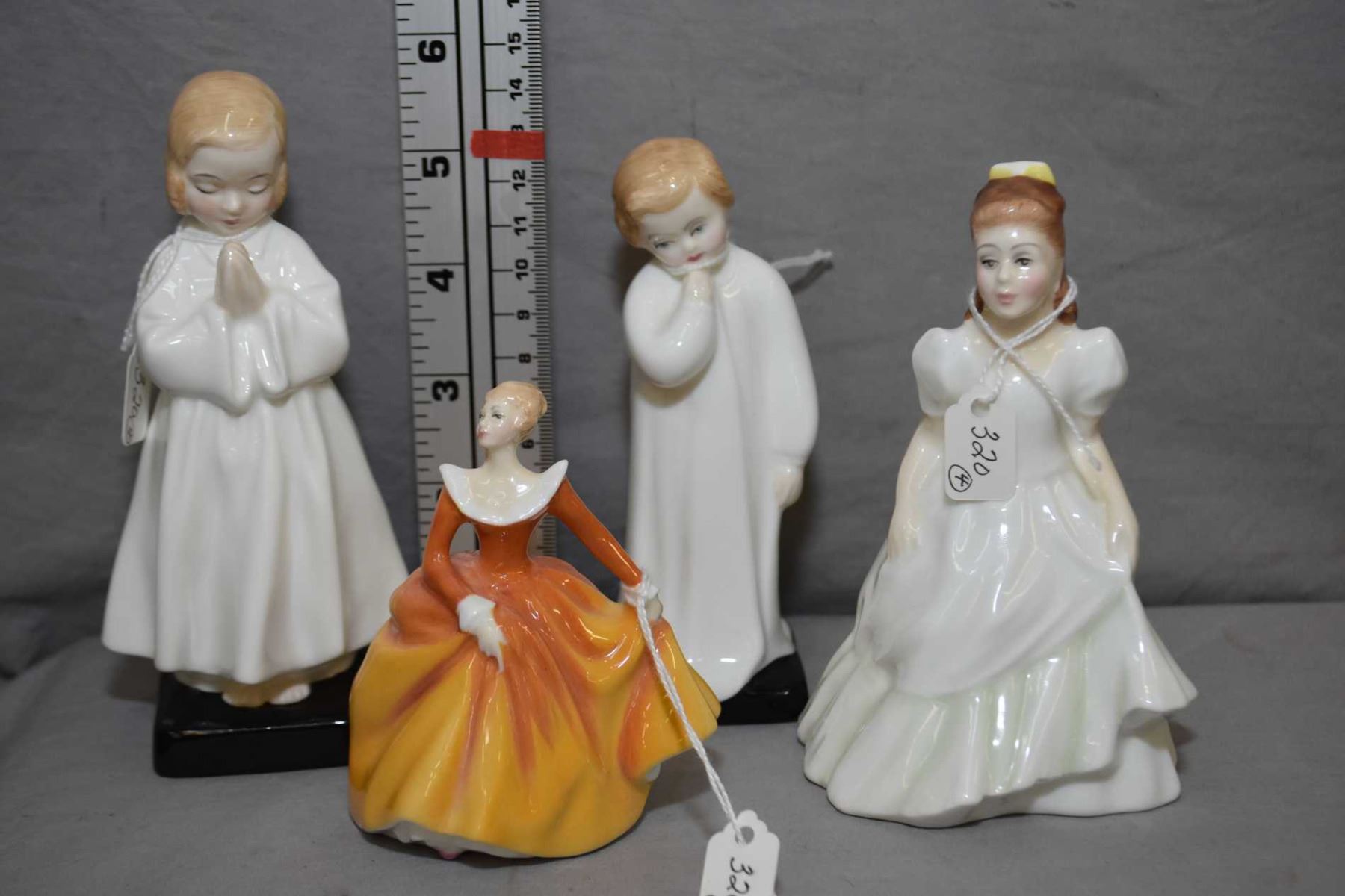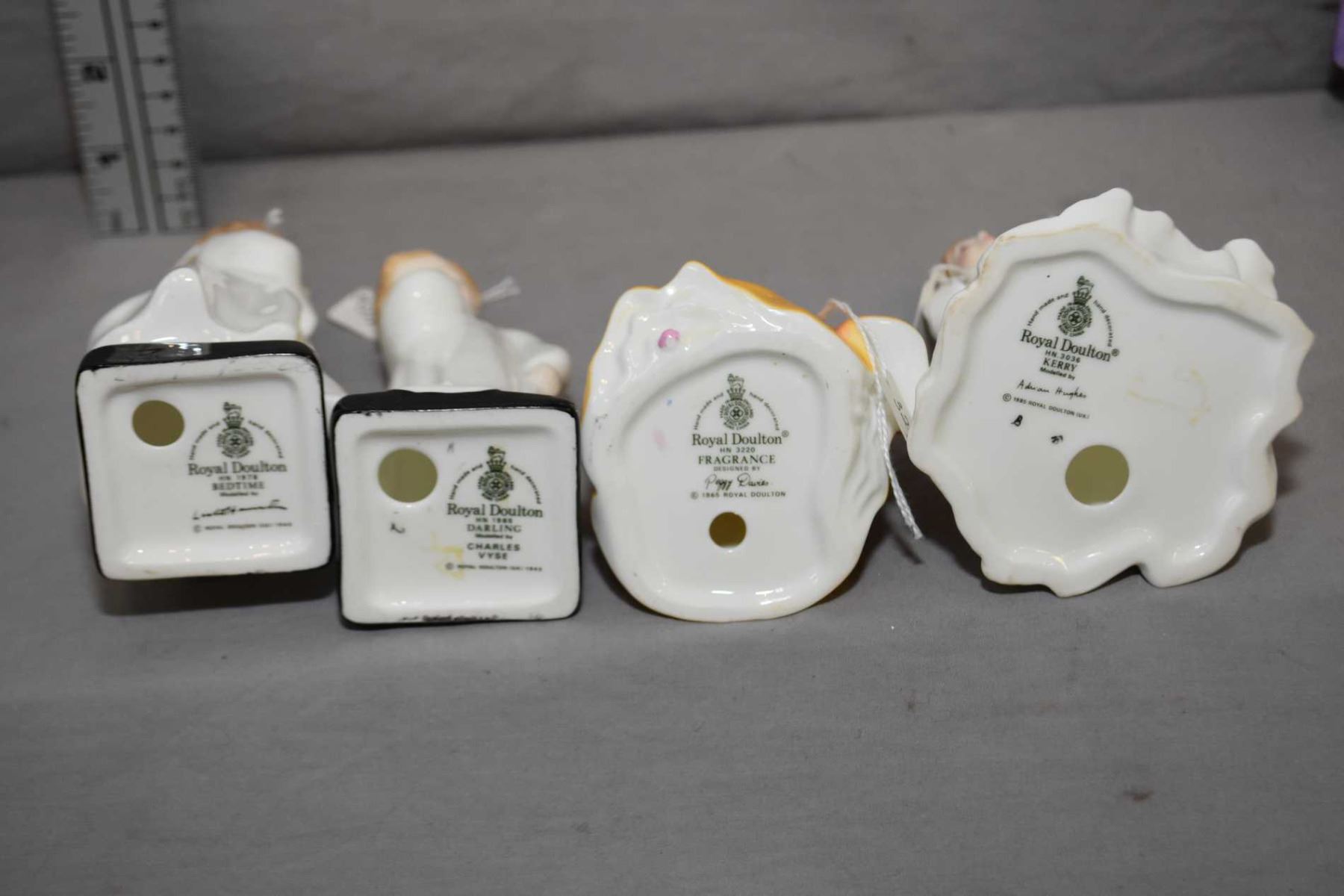Four Royal Doulton figurines including Kerry HN3036, Bedtime HN1978, Darling HN1985 and smaller figurine Fragrance HN3220