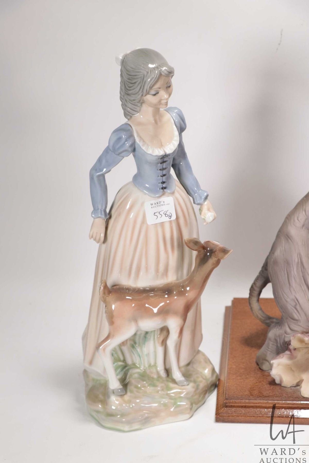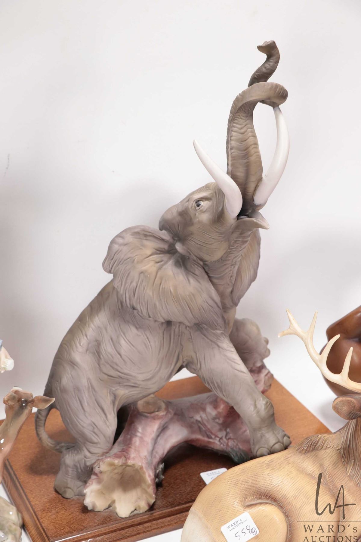 Four assorted collectible figurines including Italian Auro Velcari 16" elephant figure, kitsch antel