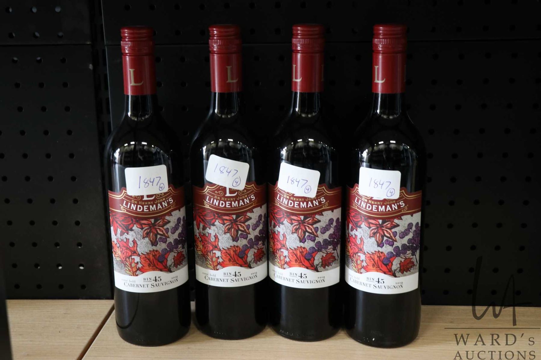 Four bottles of Lindeman's Bin 45 Cabernet Sauvignon 2019 750ml Note: Alcohol cannot be insured by any courier in Canada. Local pick up is recommended. Canadian bidders only