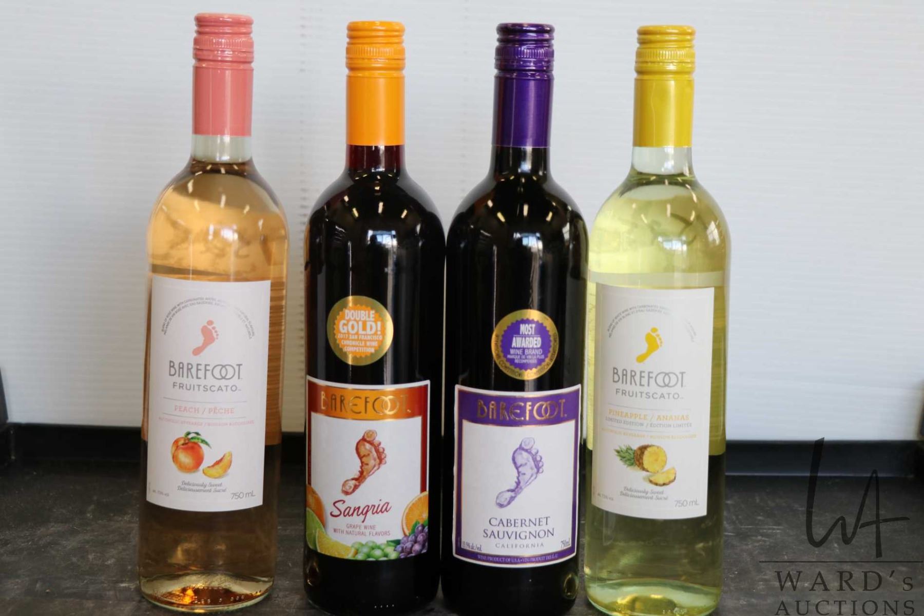 Four bottles of wine including Barefoot Fruitscato Peach 750ml / 7.5% ABV, Barefoot Fruitscato Pineapple 750ml / 7.5% ABV, Barefoot Sangria 750ml / 13% ABV, and a Barefoot Cabernet Sauvignon 750ml / 13.5% ABV Note: Alcohol cannot be insured by any courier in Canada. Local pick up is recommended. Canadian bidders only