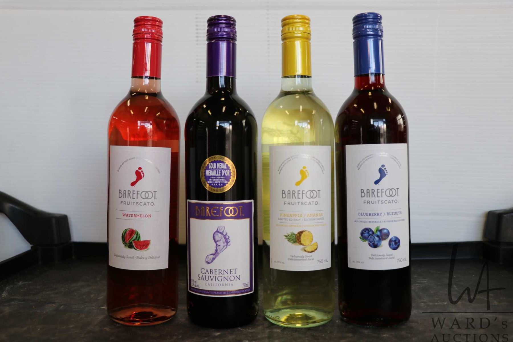 Four bottles of wine including Barefoot Fruitscato Watermelon 750ml / 7.5% ABV, Barefoot Fruitscato Pineapple 750ml / 7.5% ABV, Barefoot Fruitscato Blueberry 750ml / 7.5% ABV and a Barefoot Cabernet Sauvignon 750ml / 13.5% ABV Note: Alcohol cannot be insured by any courier in Canada. Local pick up is recommended. Canadian bidders only