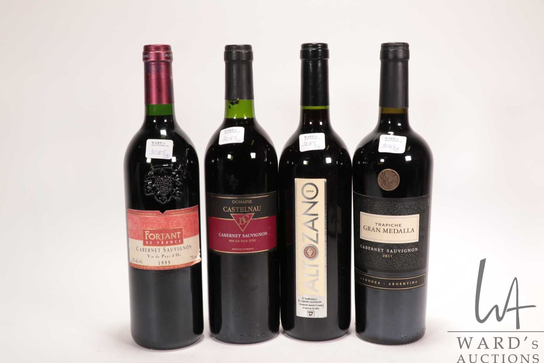 Four bottles of wine including Fortant de France/1999 Cabernet Sauvignon/750ml/ 12% ABV, Altozano/ 1999 Cabernet Sauvignon/ 750ml/ 13% ABV, Trapiche Gran Medalla/ 2011 Cabernet Sauvignon/ 750ml/ 14.5% ABV and Domaine Castelnau/ Cabernet Sauvignon/ 750ml/ 12.5% ABV Note: Alcohol cannot be insured by any courier in Canada. Local pick up is recommended. Canadian bidders only