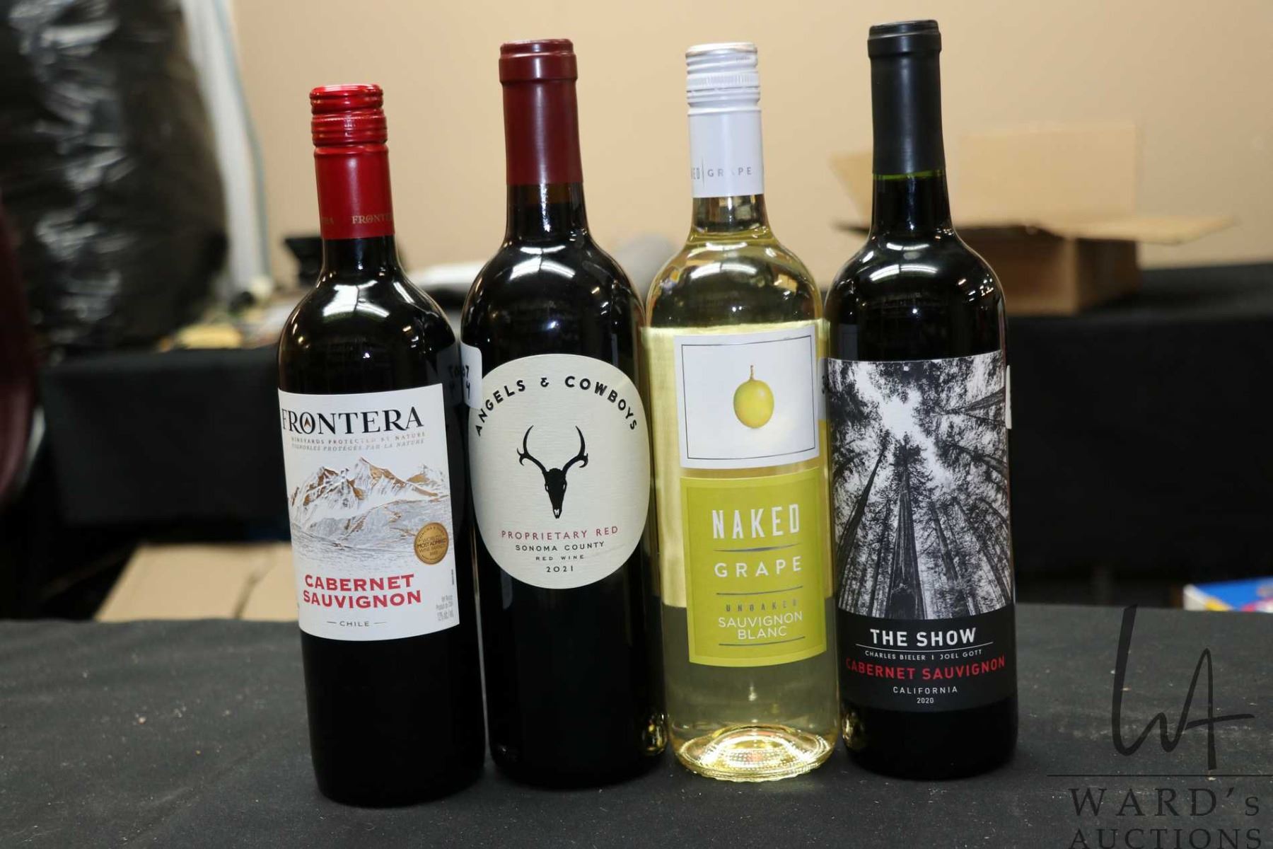 Four bottles of wine including The Show Cabernet Sauvignon / 750ml / 13.8% ABV, Angels and Cowboys Proprietary Red / 750ml / 14.5% ABV, Frontera Cabernet Sauvignon / 750ml / 12% ABV and Naked Grape Unoaked Sauvignon Blanc / 750ml / 12% ABV Note: Alcohol cannot be insured by any courier in Canada. Local pick up is recommended. Canadian bidders only