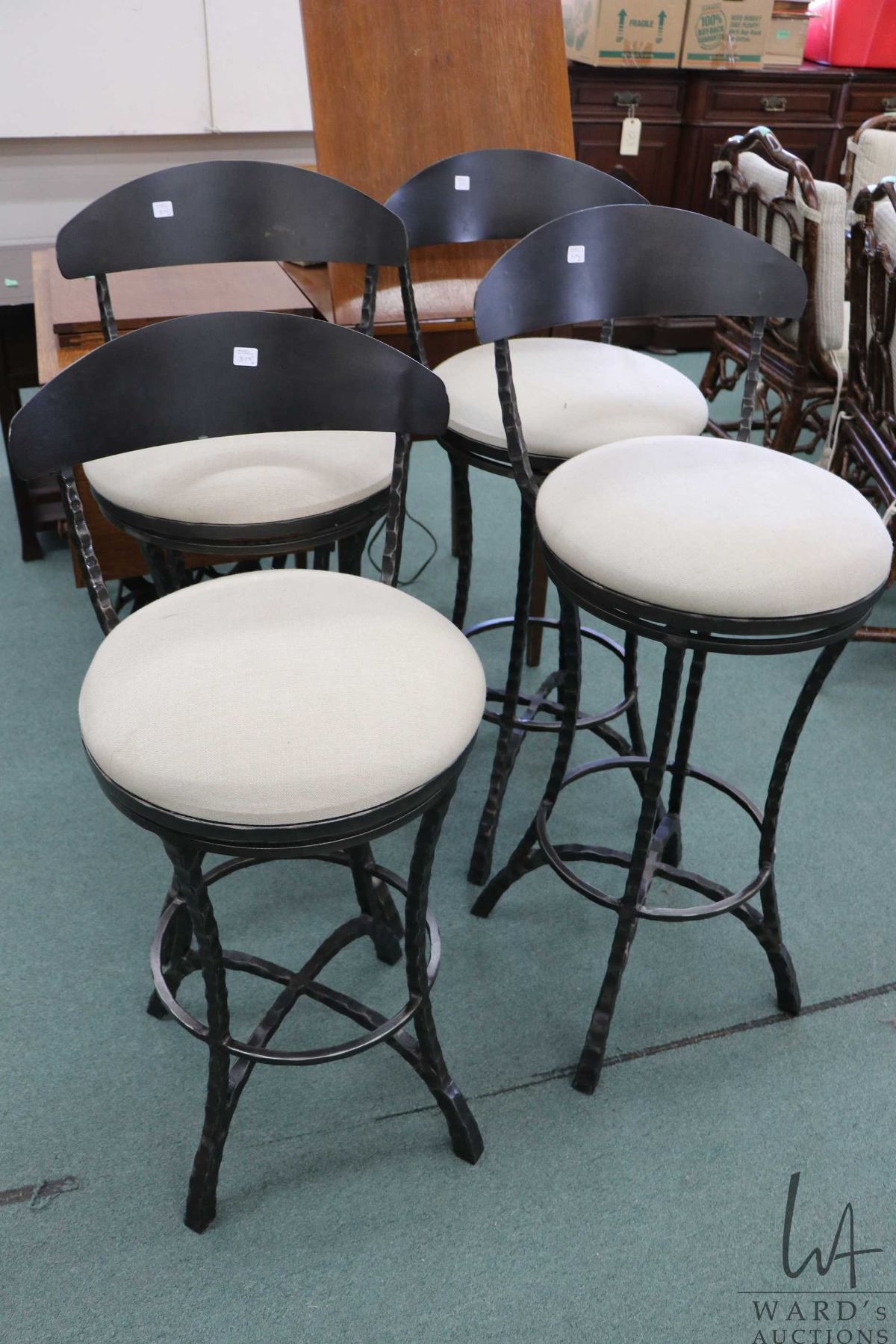 Four fabricated steel swivel stools, three with 31" seat height and one 27" height