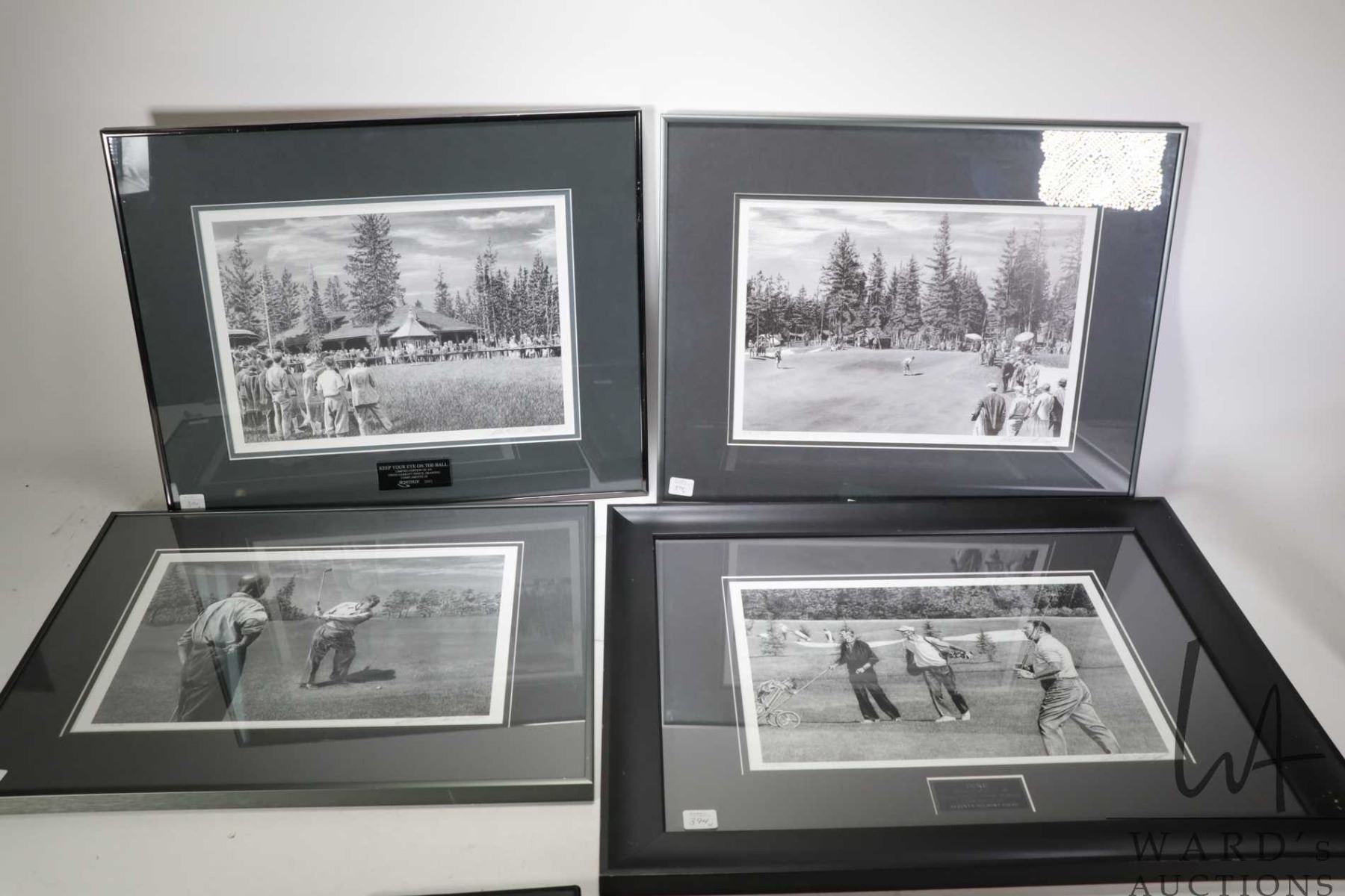 Four framed limited edition prints including Keep Your Eye on the Ball 181/1968, Fore 132/1968 and two untitled, all pencil signed by artist Owen Garrett