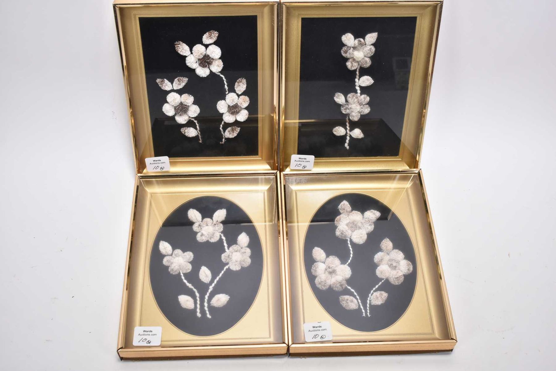 Four framed moose tuffted flowers, all in 6" X 8" frames