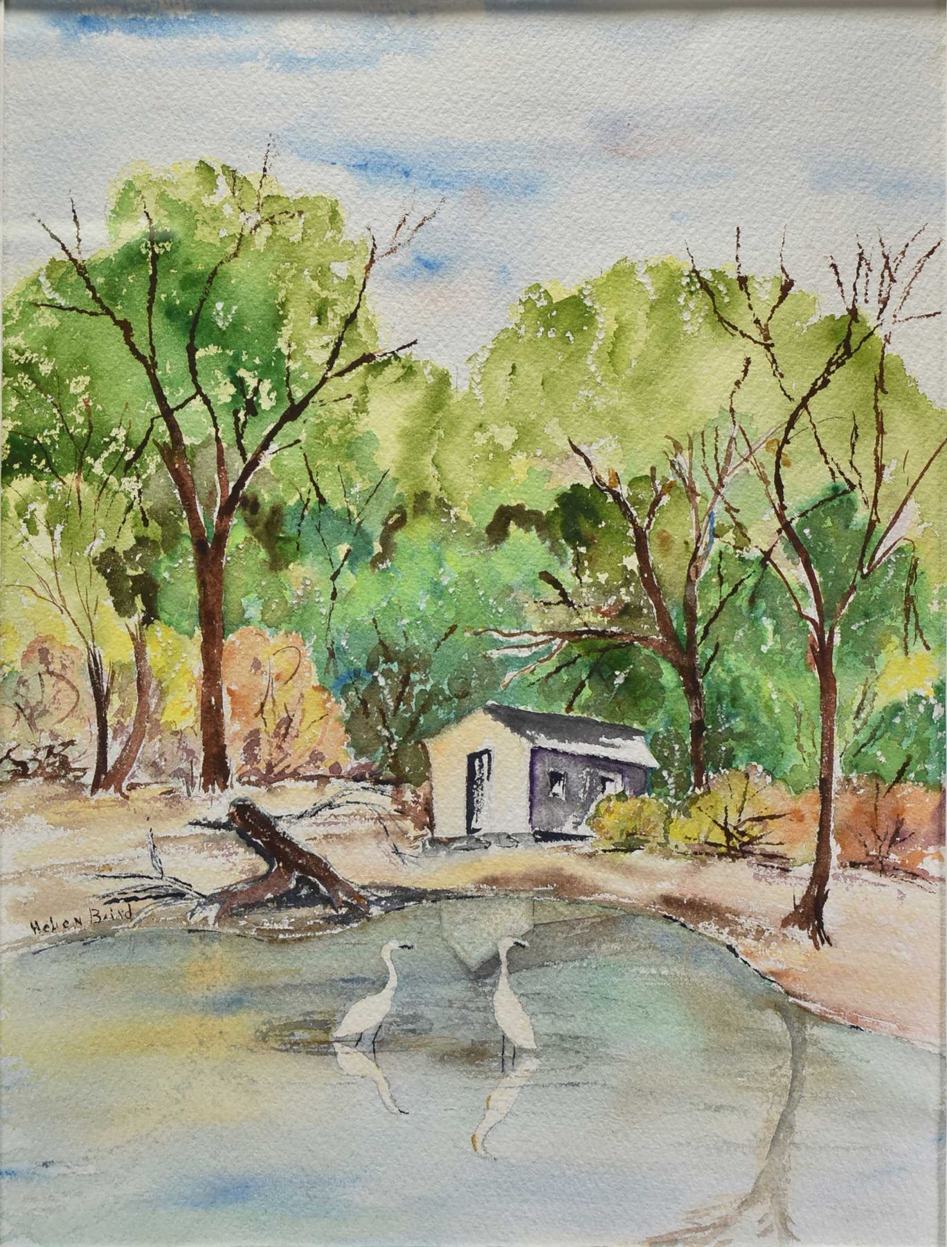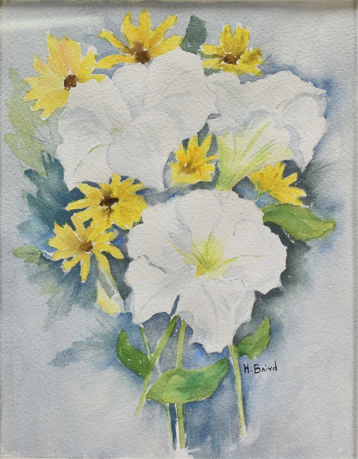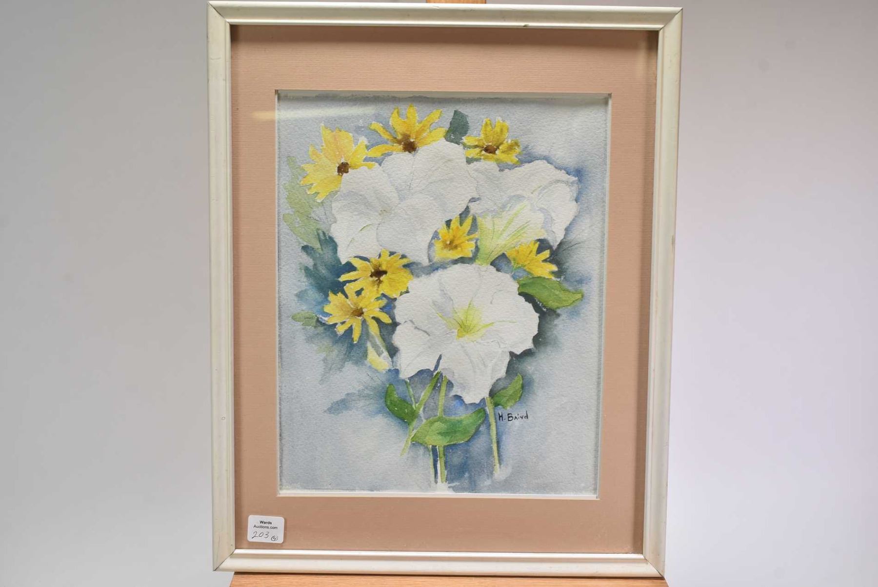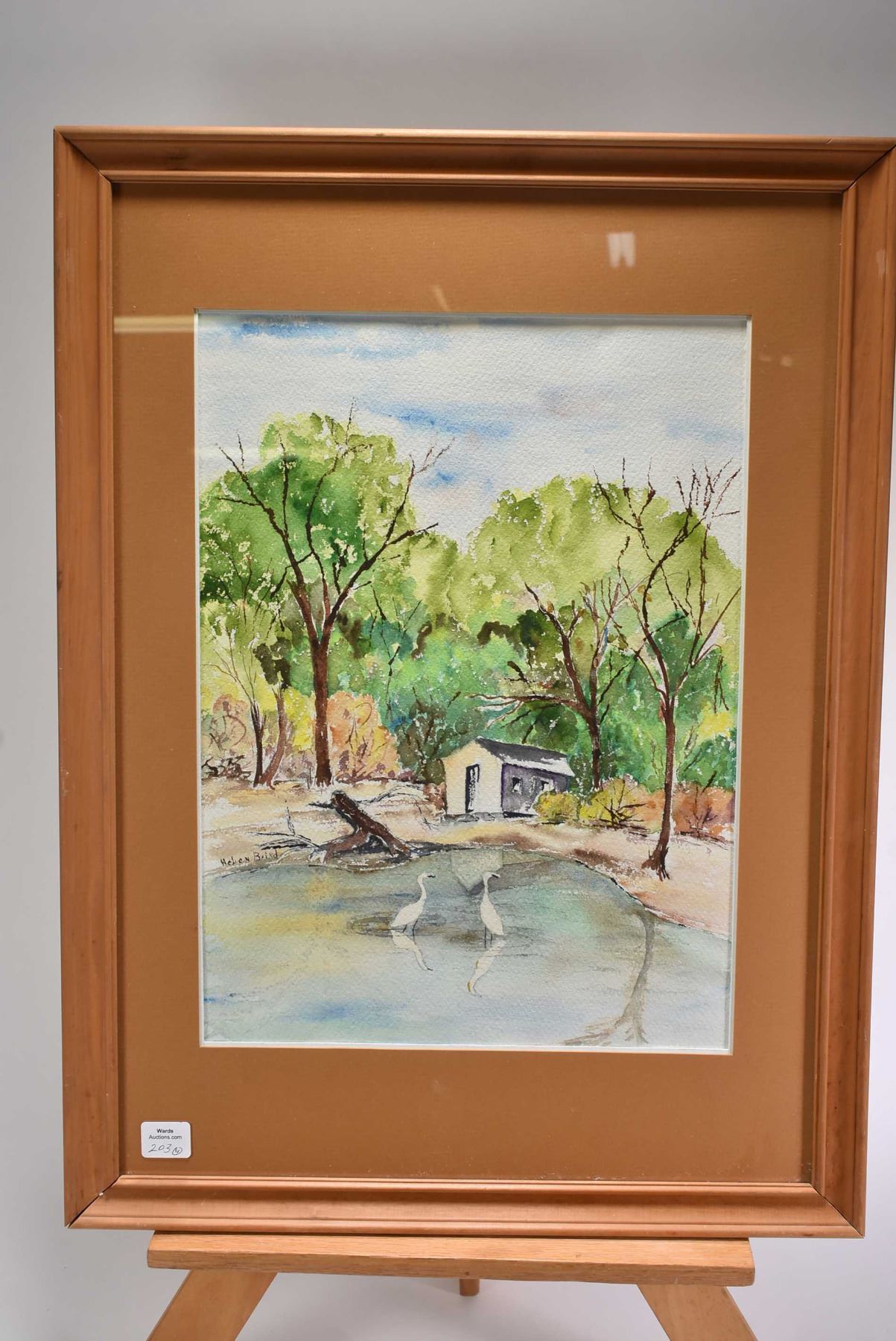 Four framed original watercolours with assorted themes, three signed H.(Helen) Baird and one with no signature seen