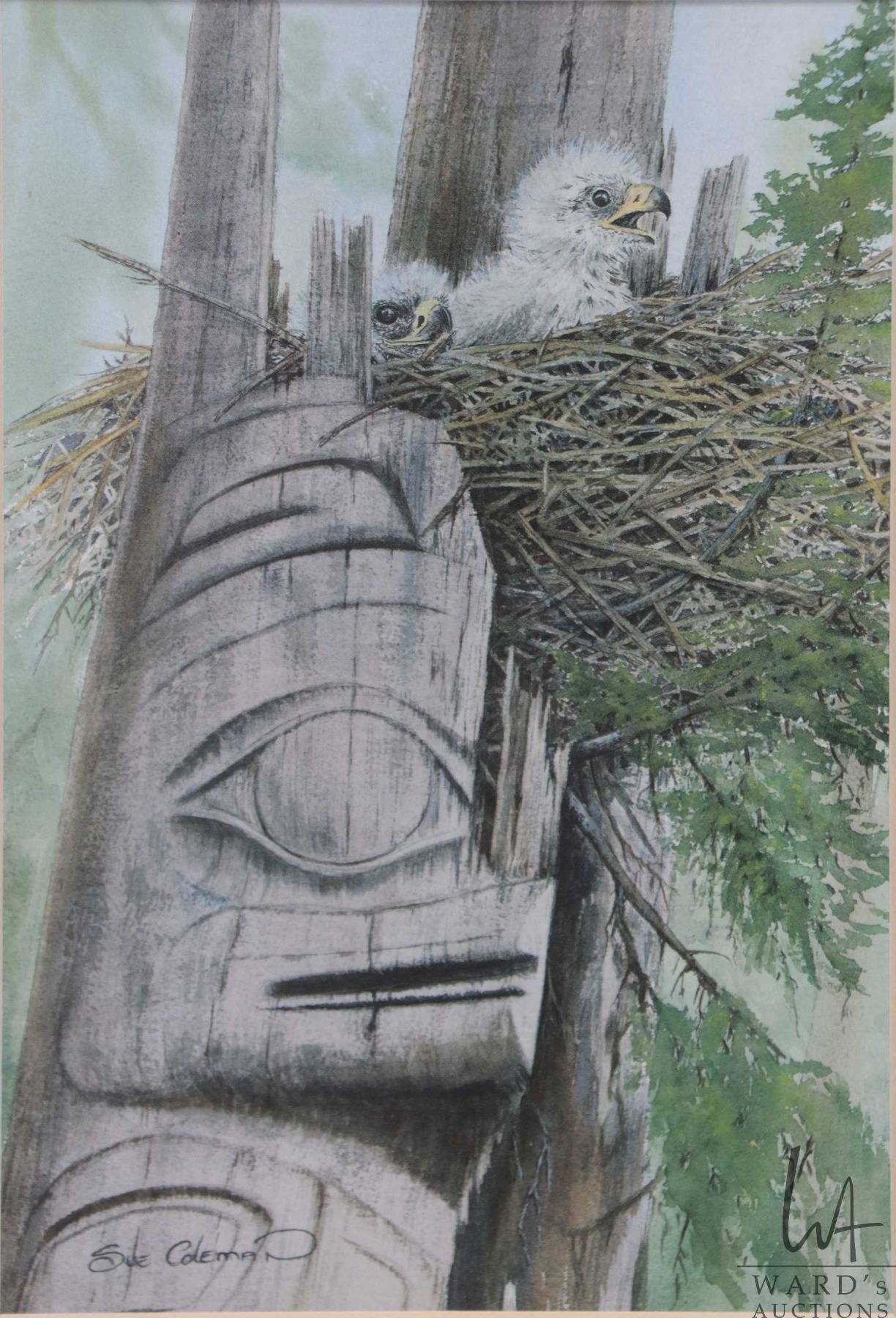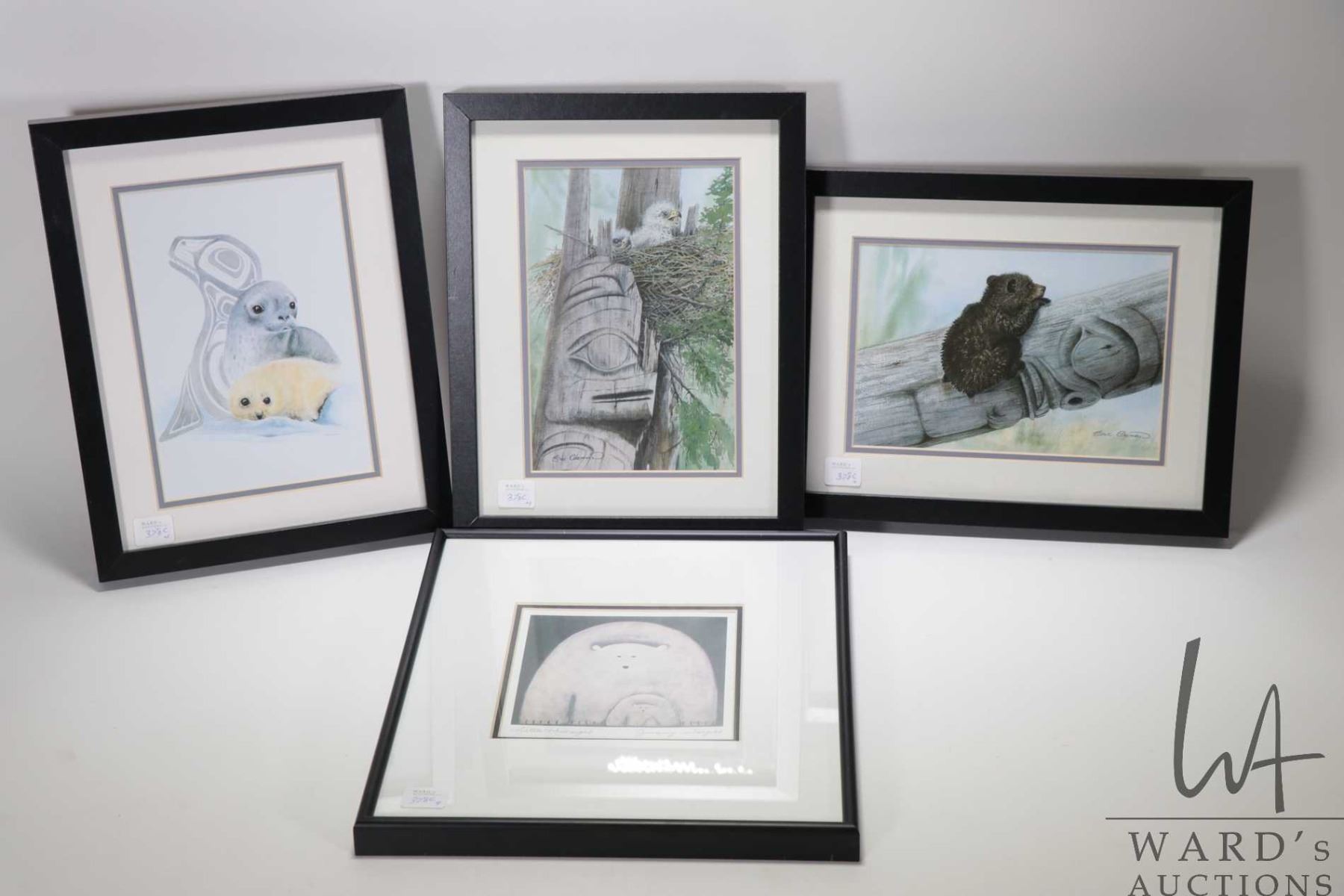 Four framed prints, three by artist Sue Coleman and one by artist Jimmy Wright