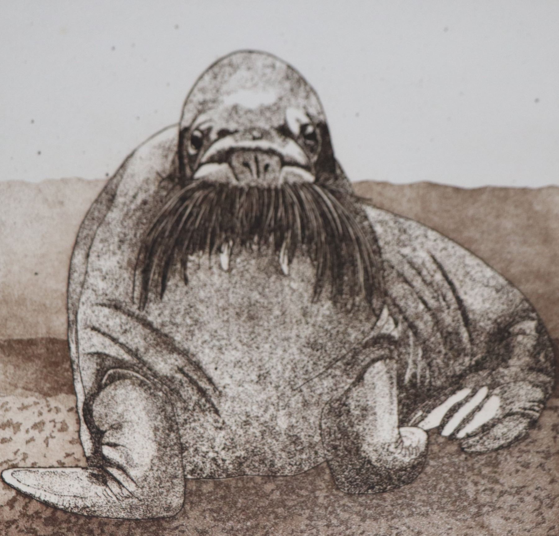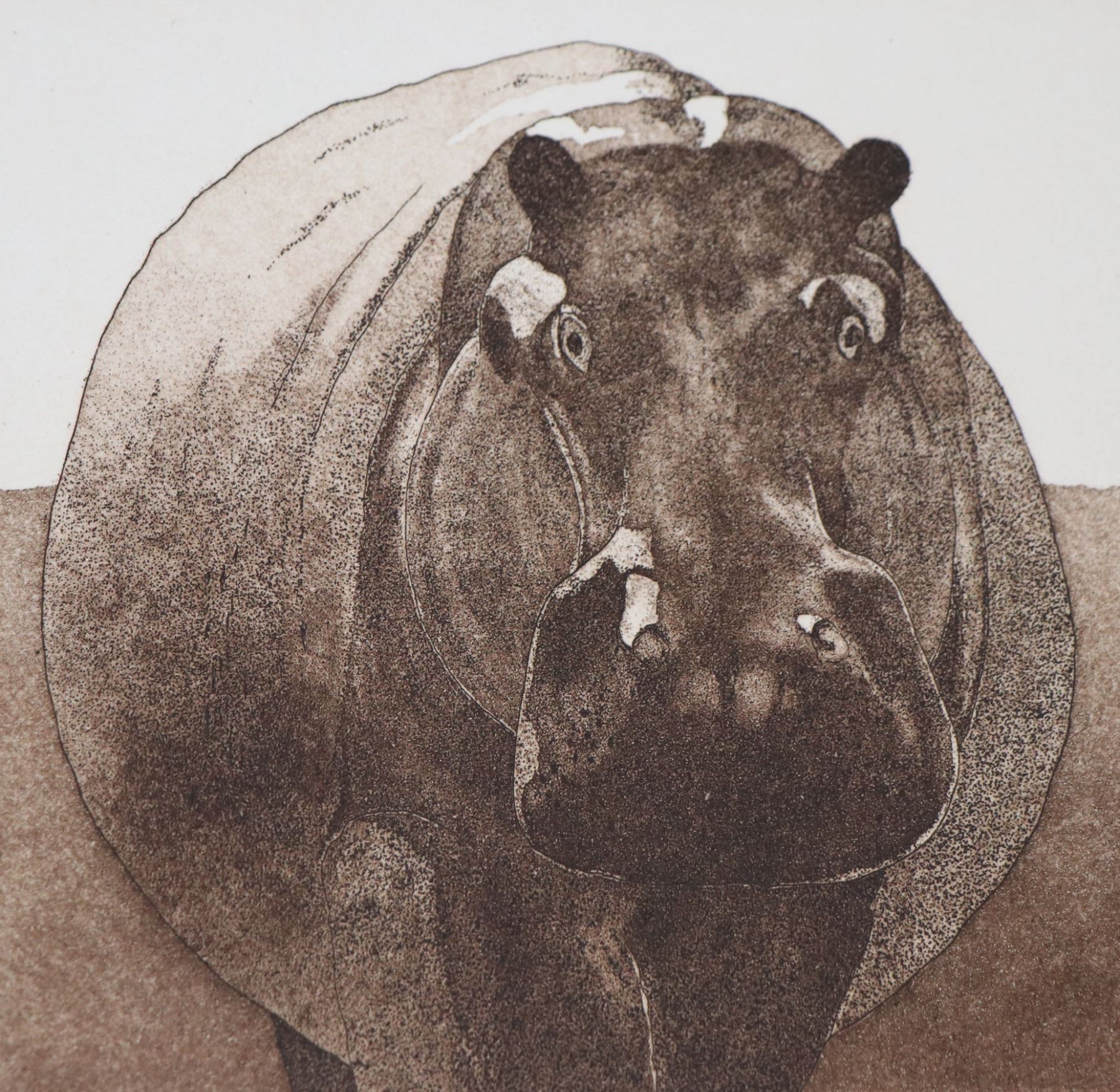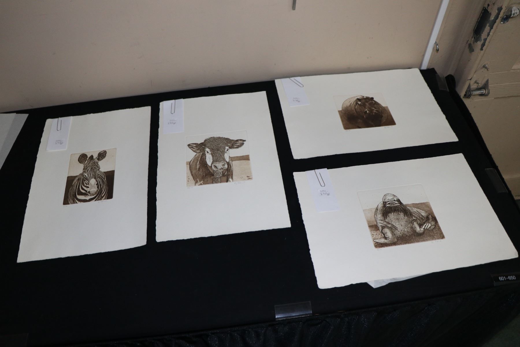 Four limited edition etchings including Walrus 105/175, Hippo 105/ 175, Cow 105/175 and a Zebra 61/ 175, all 6" X 4 1/2", all pencil signed by unknown artist